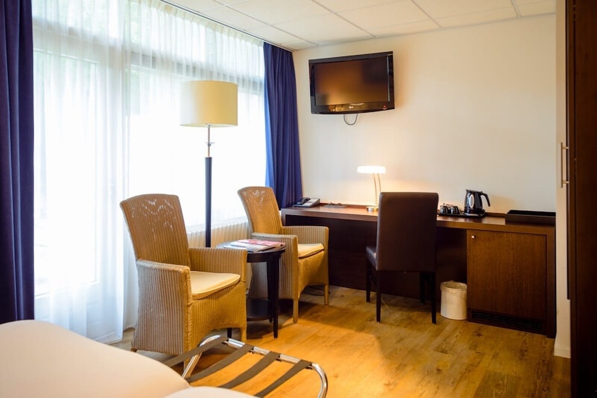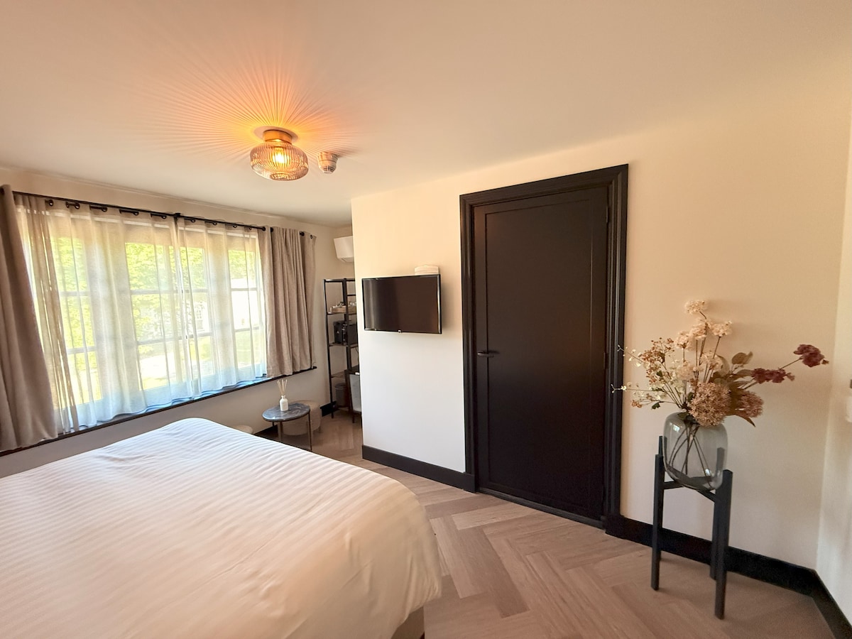 De kamer (20m2) voor wie op zoek is naar een fijne plek om compleet tot rust te komen. Deze kleinste kamer van het hotel bevindt zich op de begane grond, heeft geen kookgelegenheid, wel een kleine koelkast. Dit vindt u allemaal in uw kamer hemelbed (180x200 cm) badkamer mét inloopdouche en toilet airconditioning Nespresso koffie- en theeapparaat föhn toiletartikelen van The Gift Label kleine koelkast