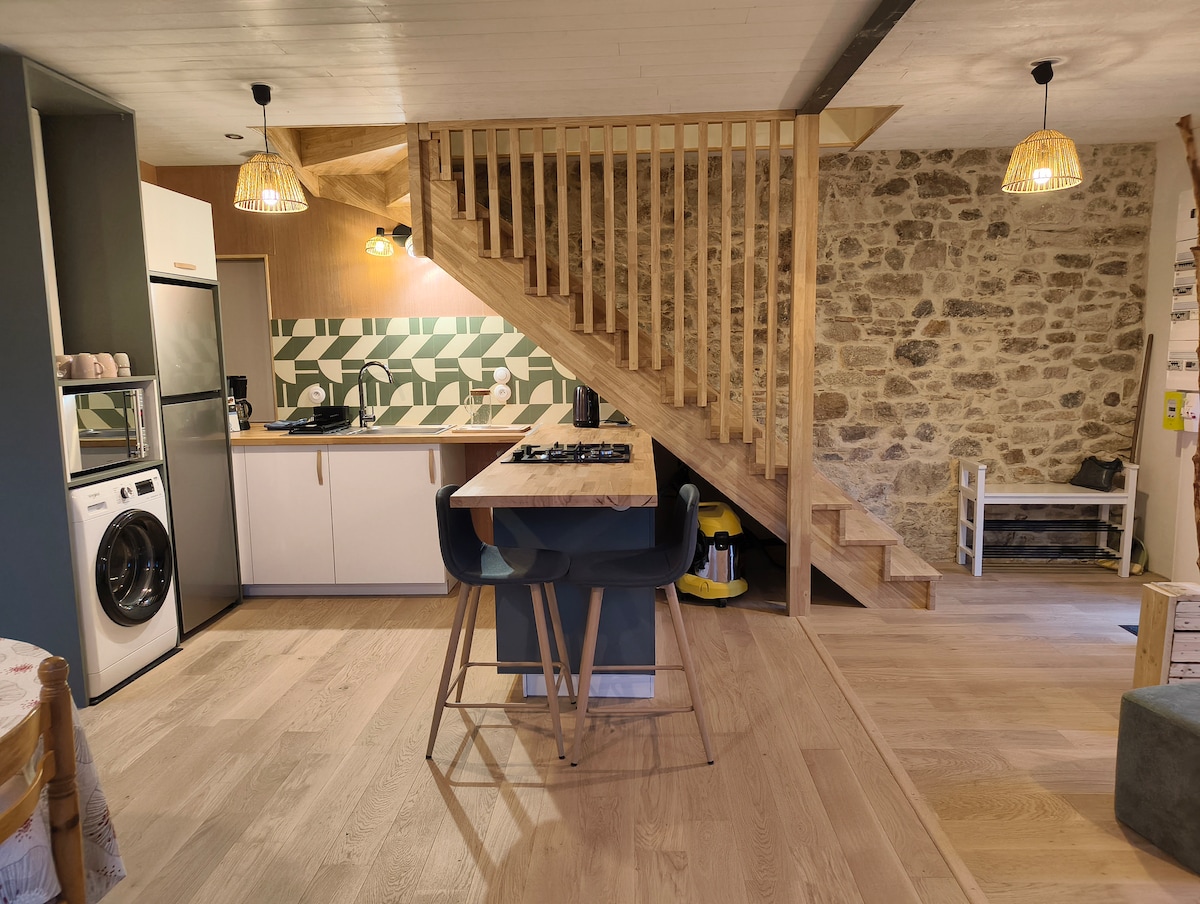 Agréable studio créé à ma façon afin que vous soyez dans un cadre chaleureux, zen pour passer un paisible séjour chez moi . Le spa se trouve dans une pièce dans mon domicile. Attenant à ma maison , coin cuisine, salon qui se transforme en coin chambre. Salle de bain , WC, complètent l'installation pour une autonomie. La baie vitrée en guise d'entrée a un verrou à clef et le volet roulant en possède un aussi à l'extérieur. La baie et votre terrasse se situent en plein soleil l'été. bienvenue 🙏