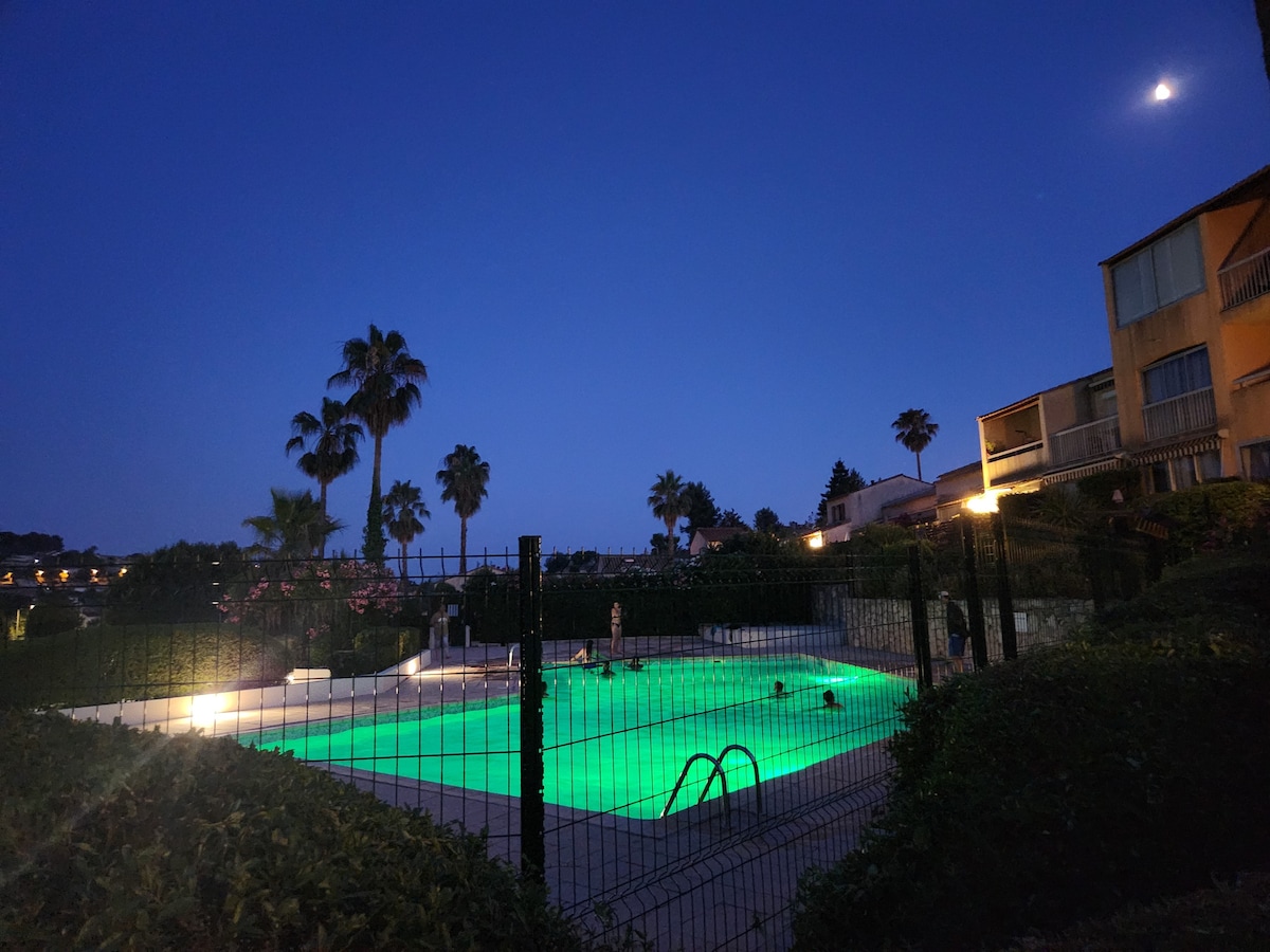 Petit STUDIO très bien équipée avec entrée et parking privé dans une grande Propriété avec piscine et jacuzzi chauffés du 15 avril au 30 octobre . La piscine extérieur et jacuzzi ainsi que le jardin sont partagés mais assez grand pour profiter chacun son espace de tranquillité . Je vis dans la bastide principale . Un Havre de Paix entouré d oliviers centenaires . A 35 minutes de l aéroport de Nice et divers villages provençaux et 14km de Cannes . Tele grand écran /abonnement Netflix
