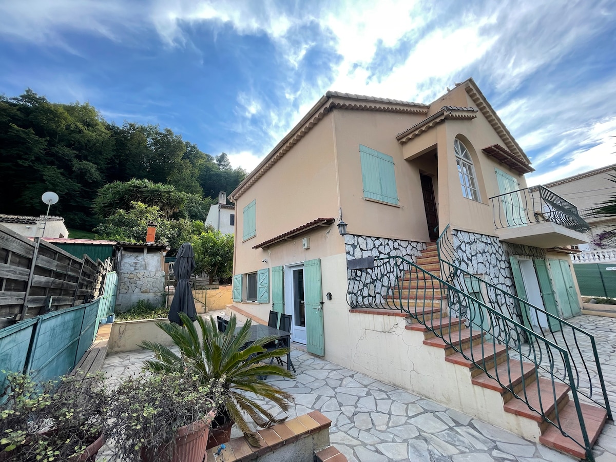 Maison indépendante, récente, sur un terrain de 1500 m2 avec piscine . Notre maison principale est située sur la propriété à quelques mètres de la maison louée. Propriété clôturée et férmée par un portail motorisé. La maison est au grand calme, elle est entourée de verdure. La mer se situe à moins de 5 km. L'aéroport Nice côte d'azur 15 mn de voiture. Cagnes sur mer se trouve entre Nice et Cannes, tout près de Saint Paul de Vence et des principaux sites touristiques.