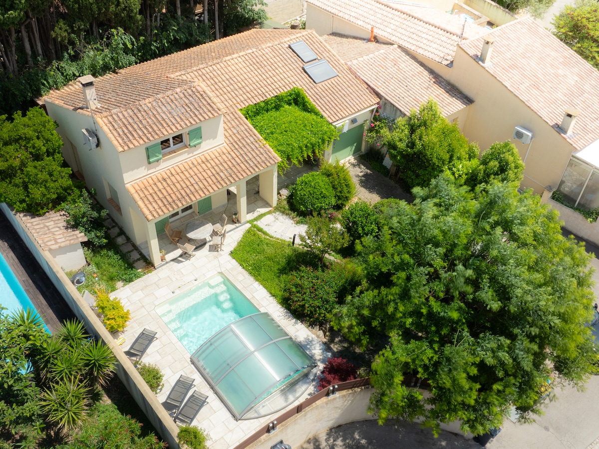 Bonjour, nous proposons un F2 meublé indépendant, avec terrasse et parking, au sein de notre maison avec piscine. Entrée privative, cuisine et salle d'eau individuelles, équipement complet et literie de qualité. Tramway à 3 min à pied, à 15 min de la gare St Roch et de la place de la Comédie, son point fort est son emplacement très privilégié, avec accès direct aux commerces, marché, et centre ville, tout en profitant d'arbres centenaires, d'une faune préservée, et du parc apaisant de 3300m2.