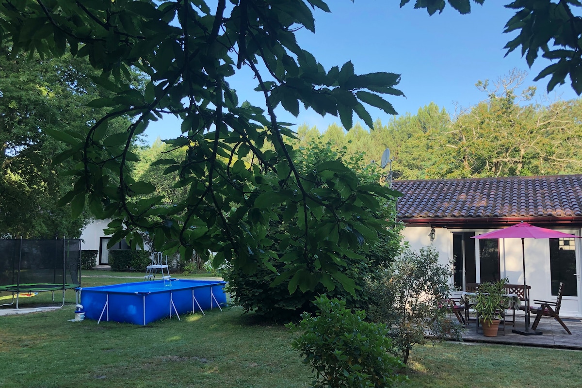 Cozy 4-bedroom cottage within the Maison Mosaic property, featuring 2 double beds and 4 single beds — perfect for families or groups. Guests enjoy access to the pool, private parking, and large garden. The cottage includes a private terrace, BBQ area, indoor and outdoor dining spaces, and a fully equipped kitchen. - Ocean is 15 min away - Chateaux for wine tasting are all around the area. - each cottage has private indoor and outdoor dining area - Resto/Supermarkets 5 min by car