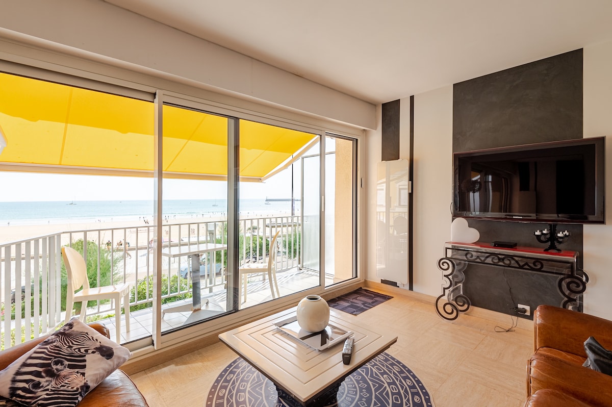 Bienvenus aux Sables ! Joli studio de 32 m2 situé au 7ième étage d'une résidence de standing en plein coeur du remblai. Une vue splendide face à l'océan, sur toute la partie droite de la baie et l'entrée du chenal. La plage et le remblai à quelques pas ! Pour votre confort, une place de stationnement gratuite vous est réservée durant la saison estivale sur juin/juillet/août. Parking à 10mn à pied du logement. Tout est prévu pour vous accueillir dans les meilleures conditions. À bientôt !