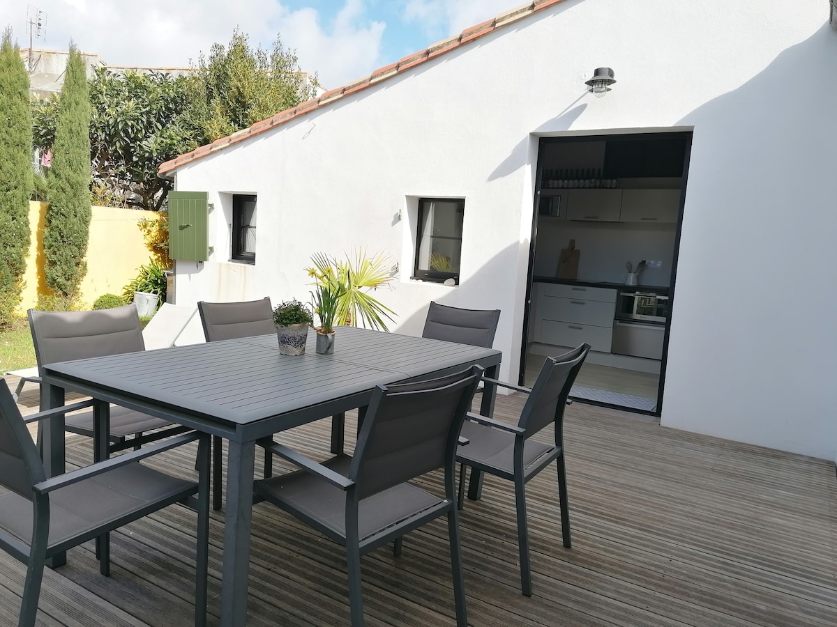 Notre maison est chaleureuse, fonctionnelle, avec un jardinet. Elle se situe à Sainte-Marie-de-Ré, dans une ruelle typique de l'ile de Ré, à 500m de la plage et 200m de la place d'Antioche (ou vous trouverez tous les commerces : boulangerie, boucherie, tabac-presse, restaurant, locations de vélos...). Cette maison peut accueillir 4 personnes. Elle se compose d'une belle pièce à vivre, d'une cuisine équipée, de 2 chambres, une salle d'eau, wc séparé . Le jardin arboré est très agréable.