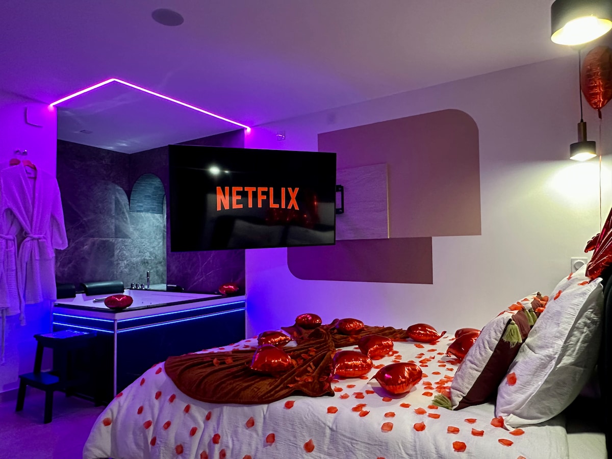 ✨ Un lieu raffiné, feutré et exclusif, idéal pour un séjour inoubliable en couple 💖 🌴 Évasion tropicale en hyper centre ville 💕 Laissez-vous séduire par une ambiance romantique 🛏️ Grand lit Queen size 🛁 Balnéo relaxante pour des moments bien-être 🔥 Sauna privatif pour une expérience détente absolue 🚗 Profitez d’un parking PUBLIC a proximité pour une escapade en toute intimité 💫