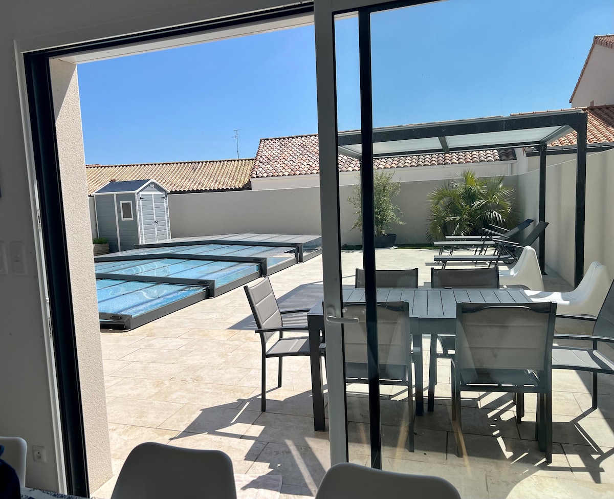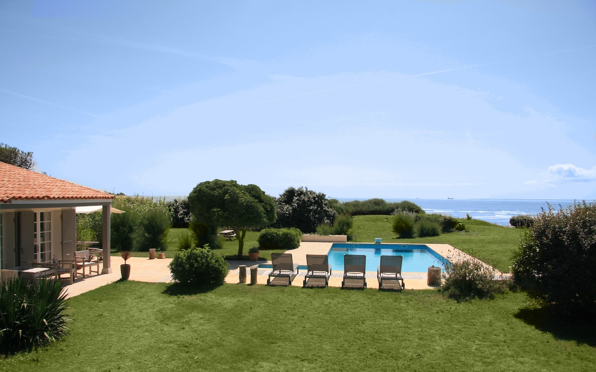 Villa Bord de mer refaite à neuf- La Rochelle 10 personnes - Piscine & Jacuzzi 5 chambres – 3 salles de Bain Emplacement magique, pour cette exceptionnelle villa contemporaine de 215 M2 au calme avec accès direct à la mer Exposée plein sud avec vue sur l'Ile d’Oléron, fort Boyard et l’Ile d’Aix. Terrasse avec piscine chauffée de mai à septembre qui domine l’océan. A 5 minutes du marché et des plages, piste cyclable devant la Villa et à 10 minutes en voiture du centre de la rochelle.