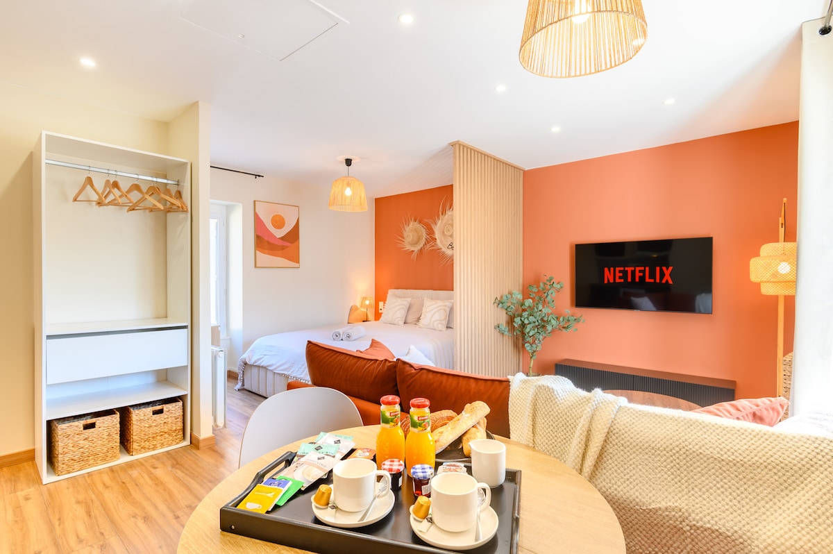 A 30 mn du Puy du Fou, "Le Citrus" est un appartement T2 de 45 m2 situé en plein centre historique de Montaigu, à 20 m des stationnements gratuits, à 50 m des commerces et restaurants, à 350 m des parcs paysagers et à 400m du Cinéma. La gare Sncf est à 10 mn à pied. L'autoroute A83 est à 10 mn en voiture. Le logement est lumineux et au calme. Idéal pour votre séjour familial, touristique ou professionnel. LES PETITS PLUS : Lits faits à l'arrivée - Le Petit Déjeuner offert et à disposition.