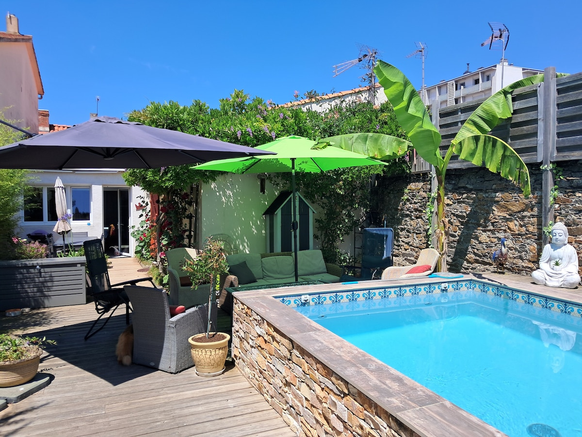Studio privatif (16m²):Sdb, TV, internet. Accès terrasse bois, salon jardin et "piscine chauffée"partagés avec les propriétaires, parking, parc ombragé .Commerces à pied, mer à 400m.Pas d animaux acceptés. Idéal pour un couple (avec petit enfant petite mezzanine sécurisée avec grand matelas, hauteur 80 cm) Pour votre GPS, rentrez : 10 rue du Dr SCHWEITZER, Les Sables d'Olonne (résidence Le Printemps). Quartier des Roses, près du lac du Tanchet, du casino des pins et de la Thalasso.