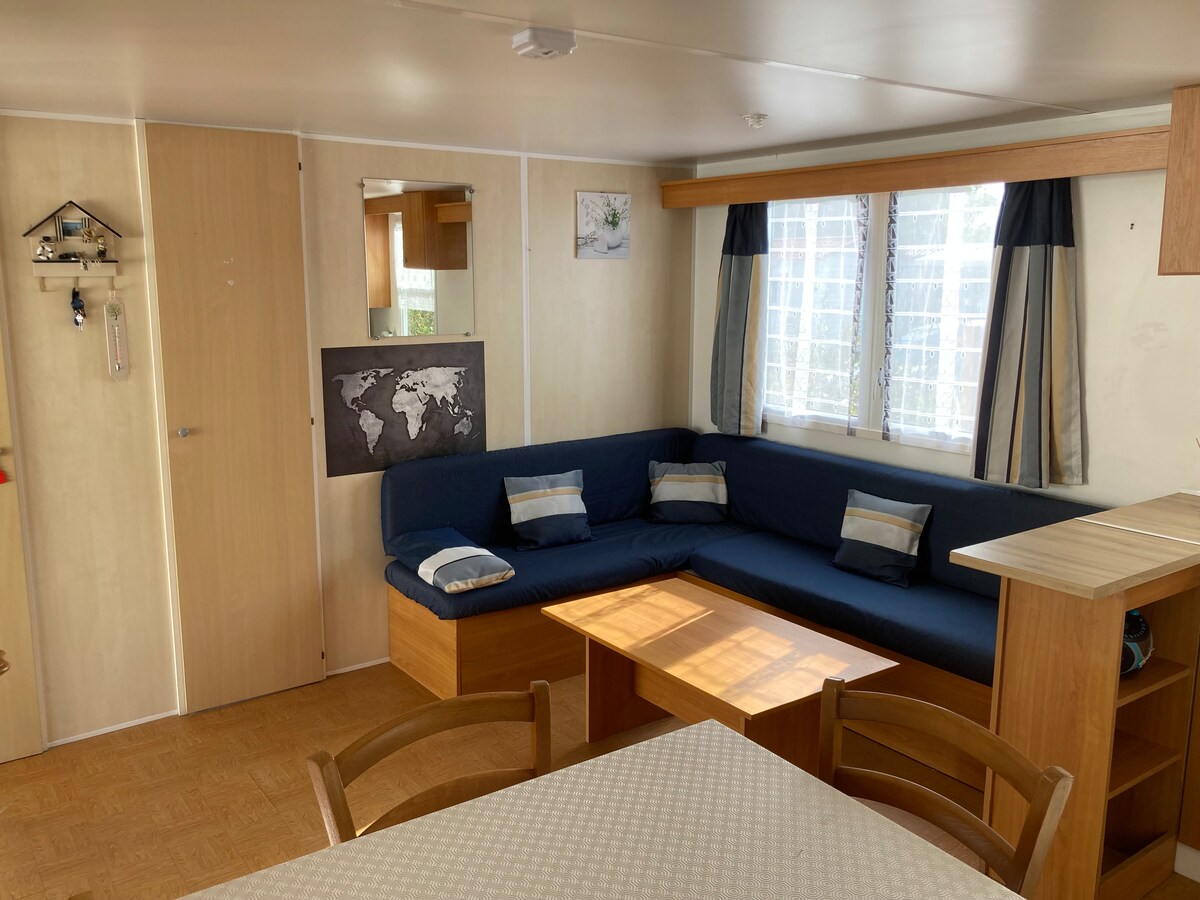 Mobil-home à louer sur camping familial emplacement calme et ombragé. Située à 150 m de la plage , 300 m de tous commerces et port de pêche. Pistes cyclables accessibles à l' entrée et à la sortie du camping. Navette estivale des plages, gratuite, 7j/7. (juillet/aout) activités et animations gratuites proposées par le camping , food truck le soir. Piscine avec 2 bassins ainsi qu'une pataugeoire et des transats du 15/05 au 15/09. Aire de jeux , terrains de pétanques Wifi gratuite à l accueil.