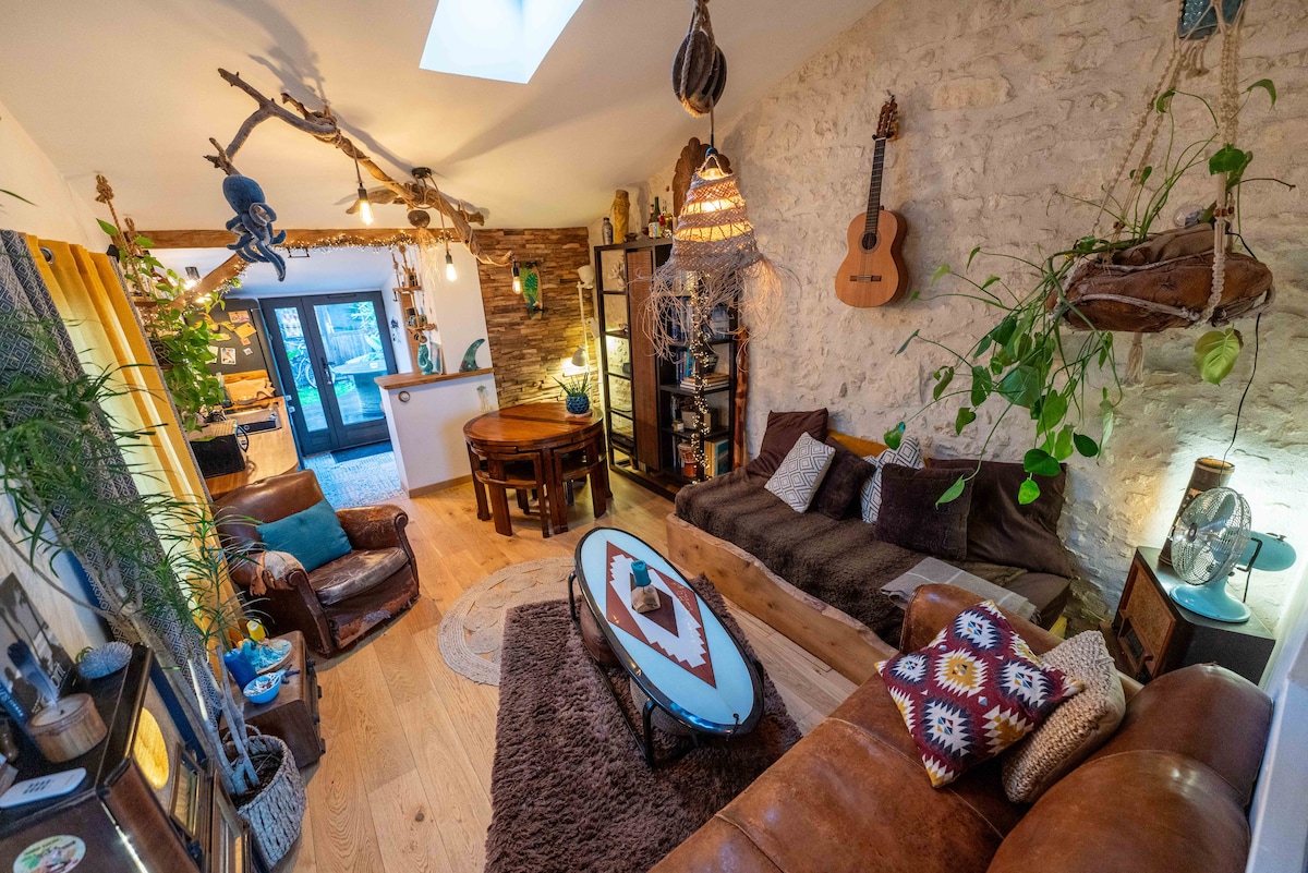 Un vrai paradis aux portes de La Rochelle dans un endroit discret à l'abri de tous les regards, situé à seulement 10 min de La Rochelle centre, et 10 min de l'ile de Ré. Profitez de cet espace de 66 m² et de son patio de 18 m². Vous pourrez apprécier l'espace de vie avec sa cuisine équipée, son salon avec TV et son billard. Accès indépendant et parking privé. Petit-déjeuner inclus. Taxe de séjour en supplément.