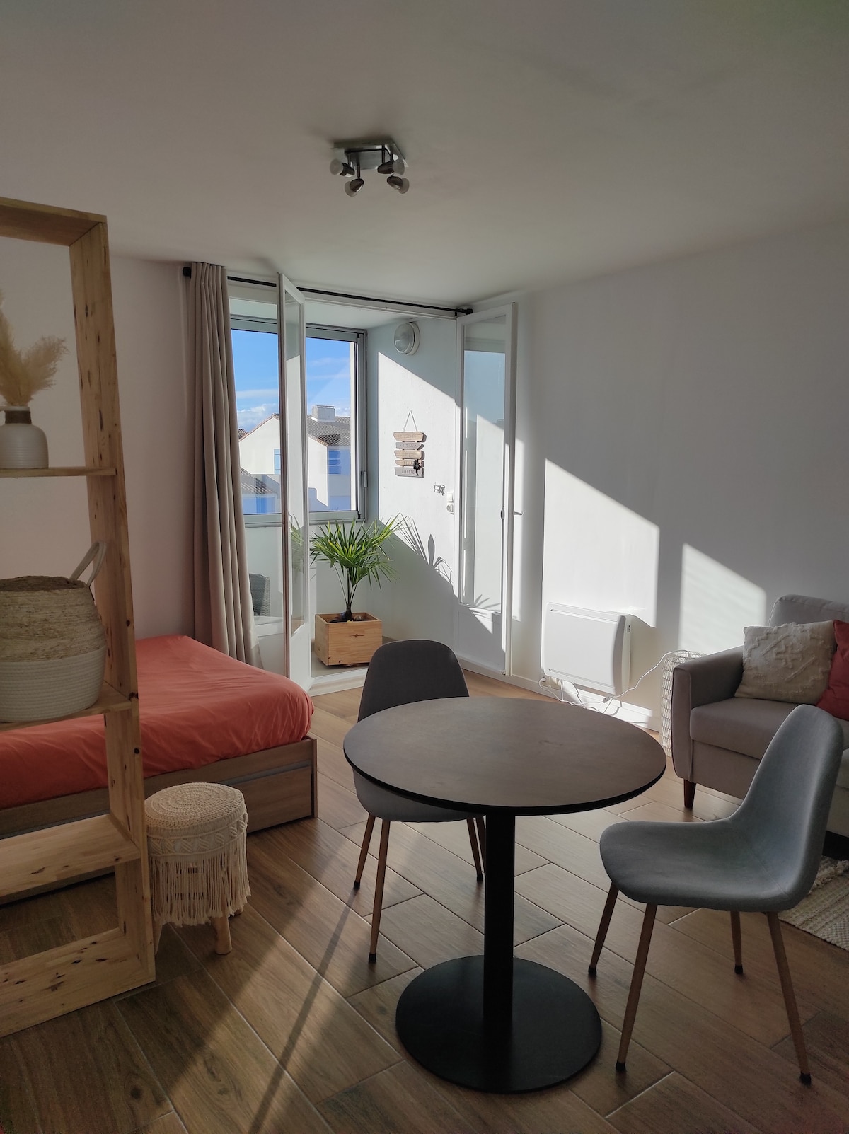 Enjoy a romantic escape in our Loft **** in Les Sables d’Olonne, designed for couples looking for relaxation and a special moment together. This charming love nest has been fully renovated with a cosy atmosphere inspired by a luxury hotel suite. Relax in the private double jacuzzi bathtub and enjoy a peaceful stay in a quiet street, just a few minutes from the train station and 13 minutes from the beach promenade and harbour.