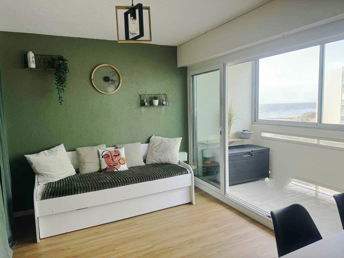 Vue imprenable sur l océan . Appart de 42m², avec terrasse. Situé au 4ème étage (ascenseur), Il est bien équipé (machine à laver, micro-ondes, télévision et internet).2***T. Petit Garage voiture individuel . L'appart est proche des commerces et au pied des pistes cyclables ,surf, école voile, casino, à proximité. Venez également vous ressourcer avec le centre de Thalasso à 5 mn à pied (forfait journée).Les frais ménage inclus le linge maison.Parking rue et alentours gratuit
