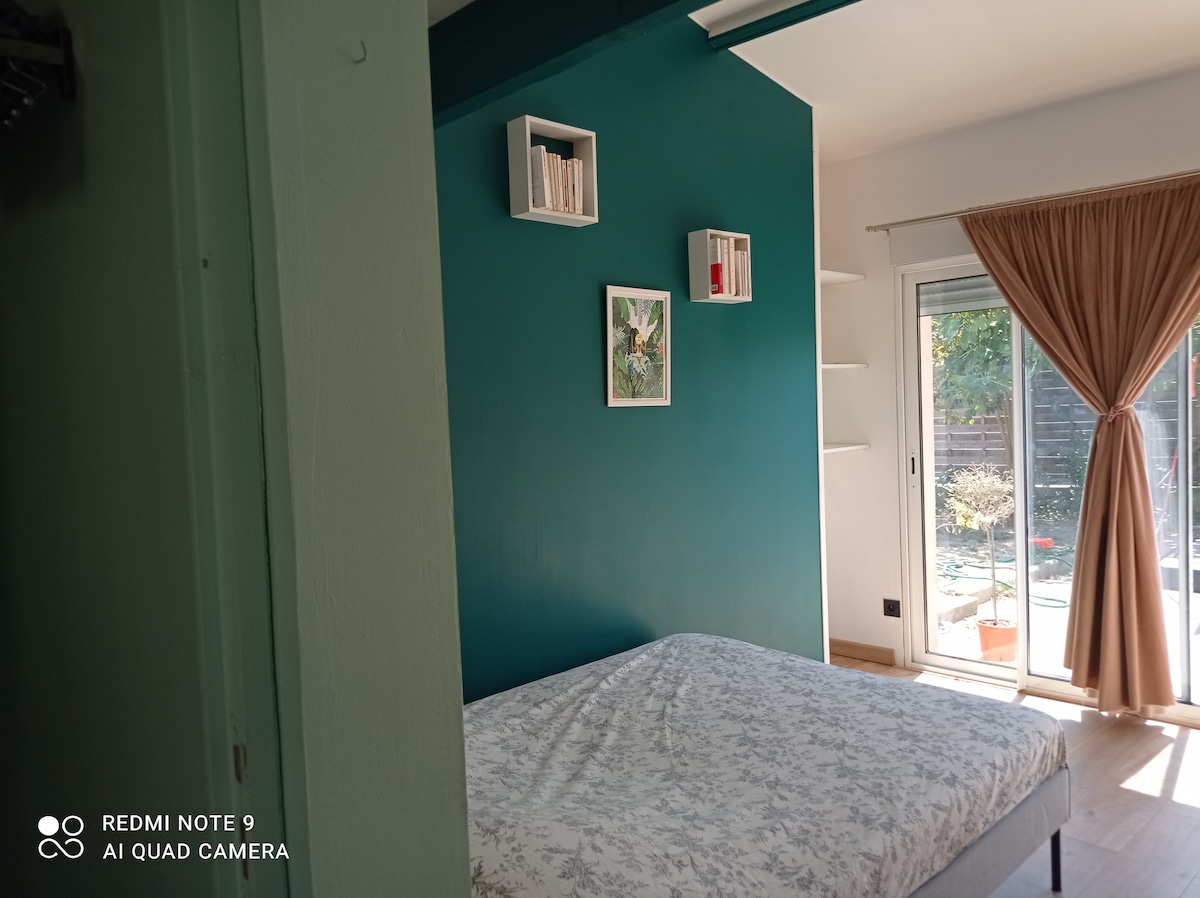 Hello Dear traveler (s), I propose a studio attached to my house with independent entrance. It is equipped with a bed of 140 cm very comfortable mattress. Small refrigerator, electric hob and microwave. A shower with thermostatic mixer, wc and a basin with storage. A wardrobe with hangers. Small office. The veranda is shared but your party includes a table for 2 people. The neighborhood is very quiet and wooded. 10 minutes walk you will find various shops.Add jacuzzi