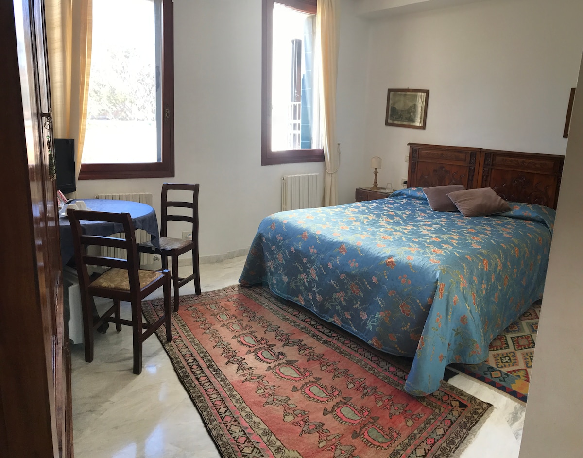 Bellissima camera da letto, con bagno privato e ingresso indipendente con porta blindata. A meno di 5 minuti a piedi da Piazzale Roma o dalla stazione. Si trova al II' piano del palazzetto, ha soffitti alti con travi a vista e pavimento in legno. Gli impianti e gli arredi sono nuovi, comodi e moderni. La stanza, luminosa e ventilata, si affaccia su una tipica corte veneziana. Dal 1570 ad oggi, ogni domenica mattina alle 10.30 i canti gregoriani dal vivo e l'incenso arrivano dentro casa. No AC.