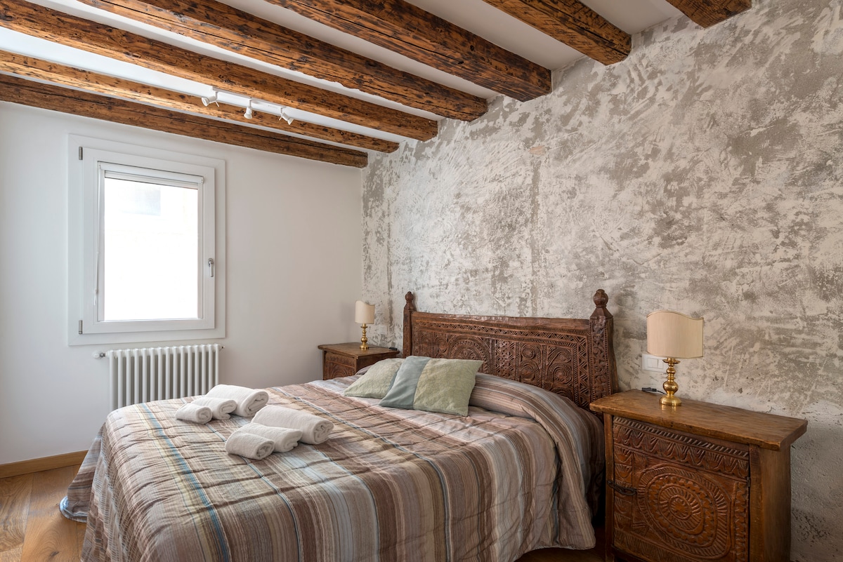 A Venetian-styled double room with private ensuite bathroom (WC & shower). It is perfect for a romantic stay for a couple. It has a large double bed, TV, WIFI, aircon (june - september), heating, wardrobe, table, chairs ... Checkin is from 16-19 o'clock (19 to 21 o'clock against an extra fee, no checkin after 21 o'clock). Checkin and key collection takes place at a partner hotel (distance 700 meters). City tax of 3€ pppn not included i and shall be paid in cash at the checkin.