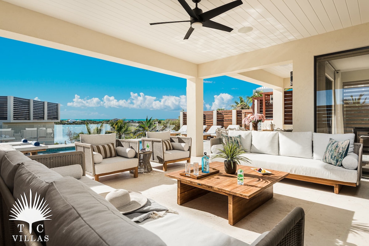 Situated on Blue Mountain Road in Turks and Caicos, the luxurious 5-bedroom villa provides a blend of opulence, tranquility, and panoramic ocean views. The property features high-end details including an Italian kitchen, a private pool, and Roche Bobois furnishings, ready for guests to enjoy both the comfort of indoor luxury and the beauty of the outdoor island setting. Guests can relish in privacy with full access to all villa amenities for a uniquely tailored experience, from gourmet cooking t