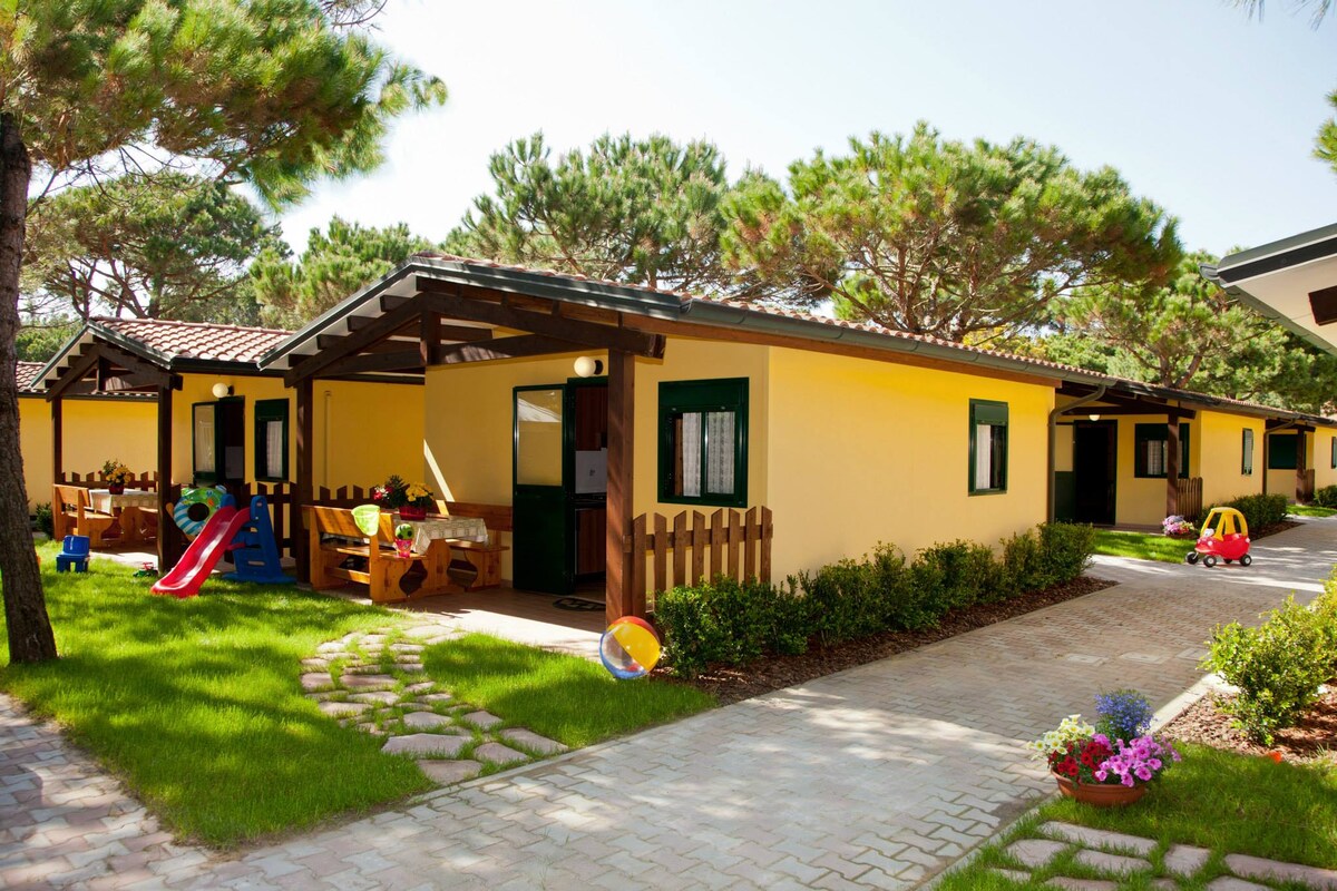 I Bungalow 2 Camere sono in legno, moderni, rifiniti con cura, arredati con gusto e immersi nella pineta. Le tende che chiudono elegantemente la terrazza esterna assicurano privacy e riservatezza. Ogni bungalow è dotato di un piccolo scoperto verde, perfetto per i bambini e i loro giochi all’aperto, ma comodo anche per i più grandi che desiderano rilassarsi all’ombra della pineta. Comodi al viale che porta alla spiaggia, i bungalow sono a pochi passi dalla spiaggia.