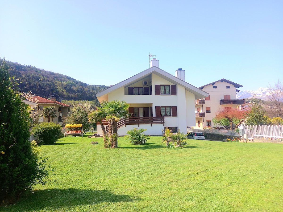 Alloggio indipendente e ad uso esclusivo degli ospiti. La struttura si trova a Brentonico immersa nel verde delle montagne del Baldo, in 15 minuti si raggiunge il lago di Garda e in 10 minuti si raggiungono le montagne dell'Altipiano. La villetta ha 3 camere da letto e 2 bagni con un ampia zona giorno. E' disponibile una piscina coperta riscaldata funzionante tutto l'anno. E' presente una palestra con Kinesis di Tecnogym. Il giardino offre una vista delle montagne magnifica.