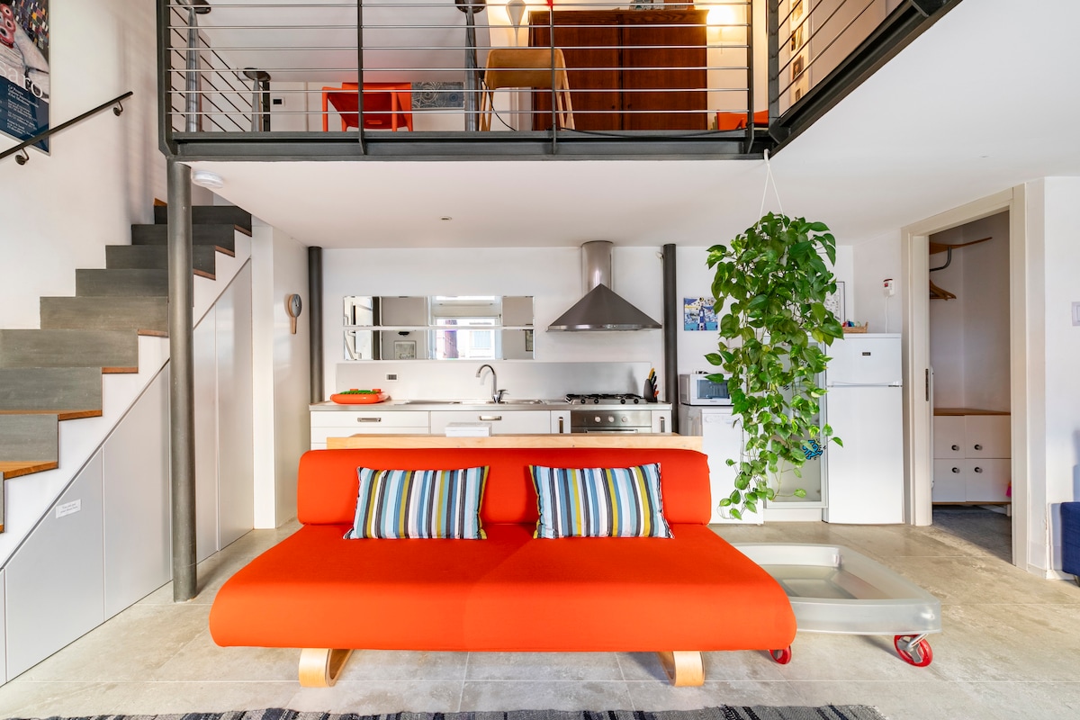 Choose a book from a shelf and sink into a red armchair under a peaked ceiling. Striking timber beams and gleaming hardwood floors add warmth and character to this remodeled attic space. An inviting spiral staircase leads to a small landing with a view. The flat offers an elegant entrance hall with large double window overlooking the nearby canal. At upper floor: living room with top quality fully equipped kitchenette, 1 master bedroom with impressive view of Madonna dell’ Orto church front, a second double/twin bedroom, 1 spacious bathroom WC/bidet/ bath/shower, a second WC with hand basin. A decorative spiral staircase leads from the living room to a small roof balcony overlooking the picturesque canal in front of the house. The apartment is provided with good WIFI CONNECTION, AIR CONDITIONING and MOSQUITO SCREENS in any room CASA ZORZI is recommended both for romantic escapes and for family holidays. I use to welcome personally my guests, spending some time on arrival to recommend my favourite places in town....... The apartment is also provided with good reference books useful to plan and enjoy a stay in Venice. The Apartment is located on the quieter side of the truly Venetian Cannaregio District. The house is beside the magnificent Madonna dell' Orto Gothic church, containing cherished treasures including Tintoretto masterpieces. It is 15 minutes away from Rialto bridge. It is very easy and comfortable to reach by public transport either you arrive from Marco Polo airport or from the Train Station, with no bridge to cross with your luggage between the nearest waterbus stop and the apartment. A City stay tax of € 4,00 per day /per person ( € 2,00 for 10/16 children, excluding children up to 10) is due up to max 5 days.
