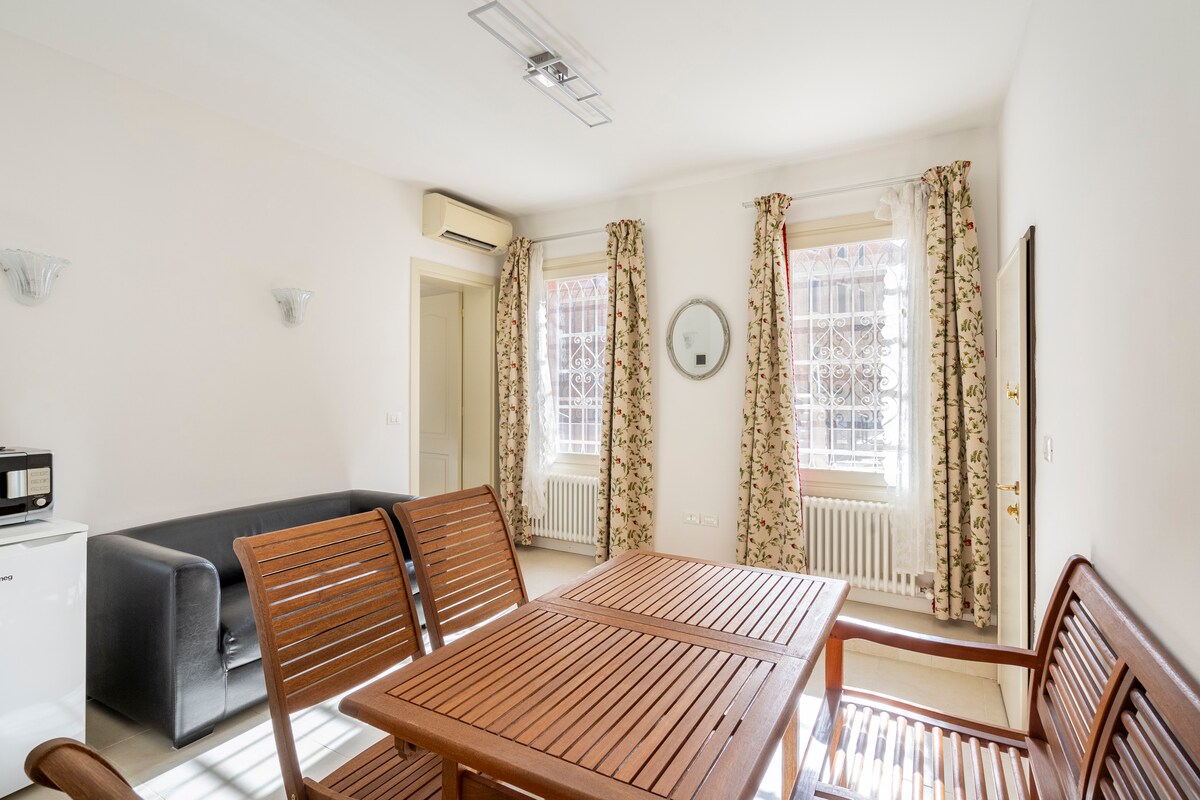 Casa al Ponte Scudi is a luxurious apartment of about 80 sqm. Housed in an ancient 13th century Franciscan convent, it is located on the ground floor and consists of an entrance hall, a large living room with separate kitchen, a large double bedroom with ensuite bathroom with bathtub, two alcoves. with sofa beds and a second bathroom with a big shower. The house has 4 windows with breathtaking views of the canal, WiFi connection, AC system and details of great refinement and design.