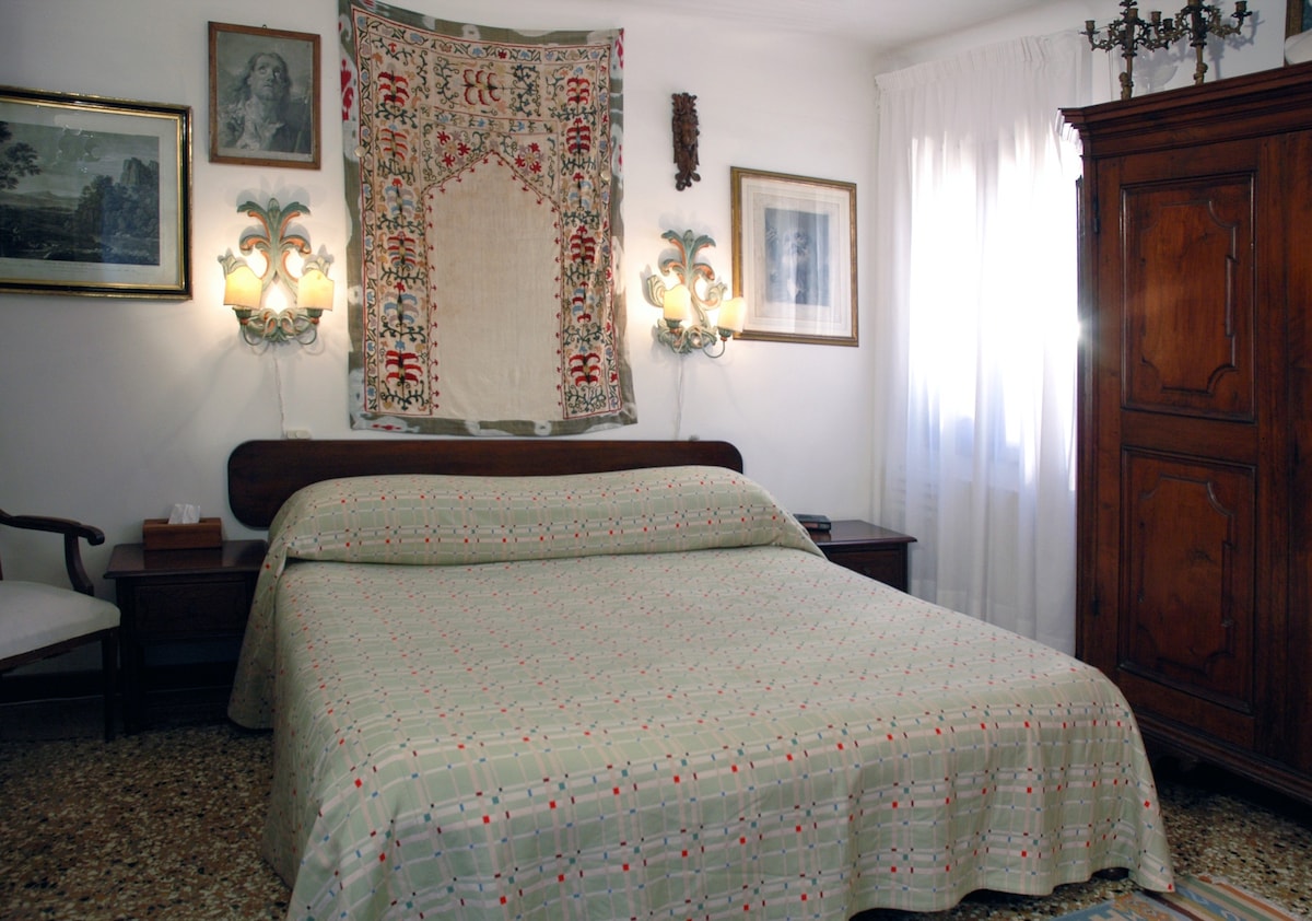 Bellissima camera da letto, con bagno privato e ingresso indipendente con porta blindata. A meno di 5 minuti a piedi da Piazzale Roma o dalla stazione. Si trova al II' piano del palazzetto, ha soffitti alti con travi a vista e pavimento in legno. Gli impianti e gli arredi sono nuovi, comodi e moderni. La stanza, luminosa e ventilata, si affaccia su una tipica corte veneziana. Dal 1570 ad oggi, ogni domenica mattina alle 10.30 i canti gregoriani dal vivo e l'incenso arrivano dentro casa. No AC.
