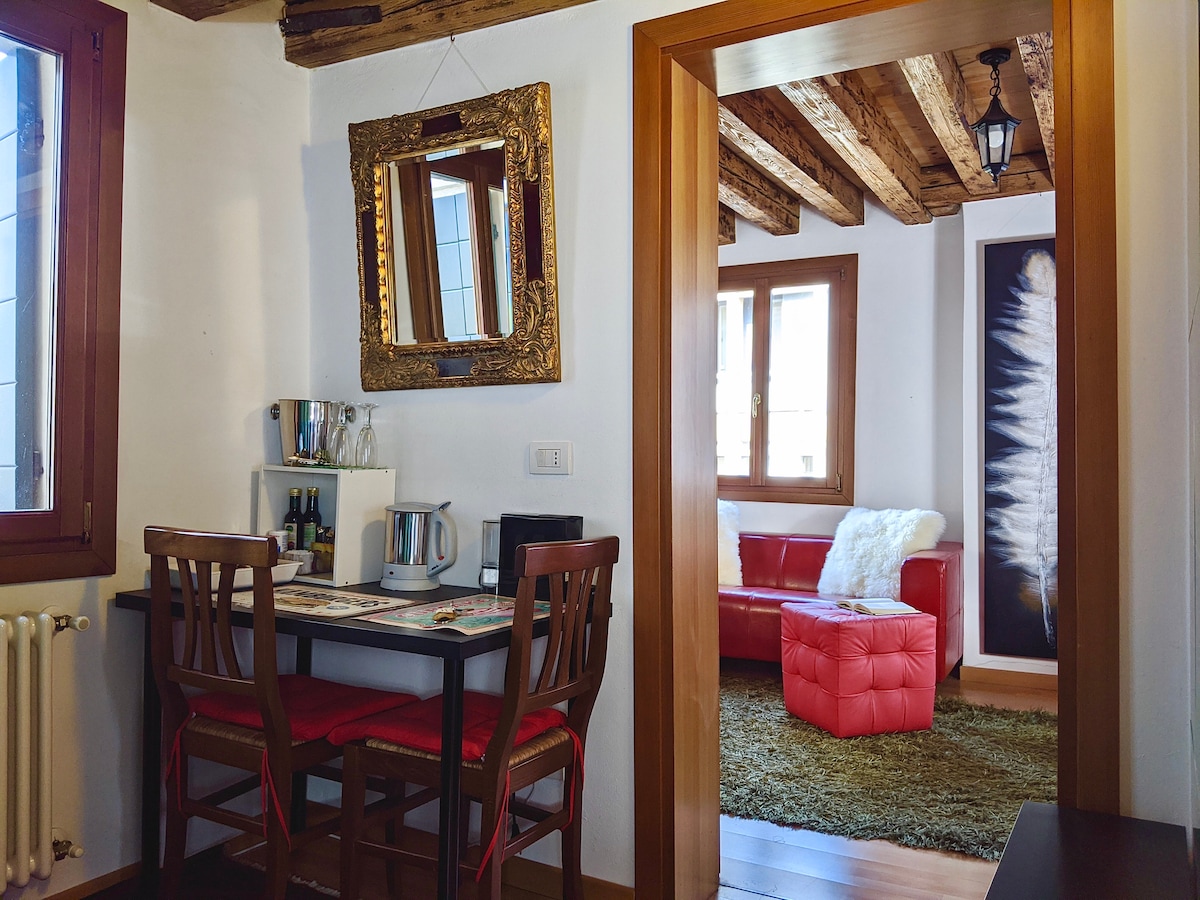 The heated wooden floor and the living area with exposed beams make the accommodation very welcoming. The terrace on the floor will allow you to have lunch and dinner outdoors among the roofs of Venice. Alilaguna Motorboat AIRPORT - S. STAE (meeting point). S. STAE is stop no. 5 in the Grand Canal. Upon your arrival, the Municipal tourist tax must be paid equal to: € 4.00 per person per night of stay; € 2.00 for young people between 10 and 16 years old (not yet completed)
