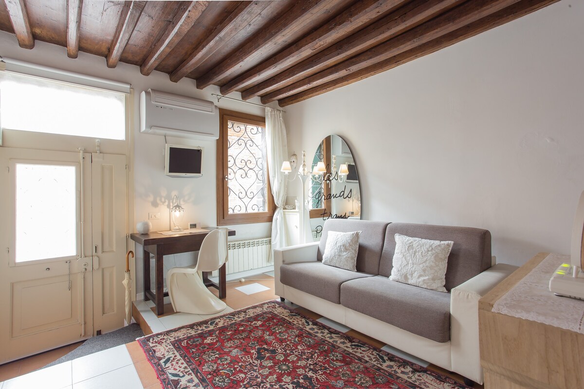 This apartment looks like an English cottage is in the middle of the historic center but sheltered from the crowd: the previous owners were two English University professors who loved Venice and came here to write. When we saw it it seemed simply perfect for just 3 nights or a longer stay: the kitchen is fully equipped, the living area is comfortable and with a real fireplace , the bedroom is very large and the large bathroom is perfect for relaxing at the end of the day!