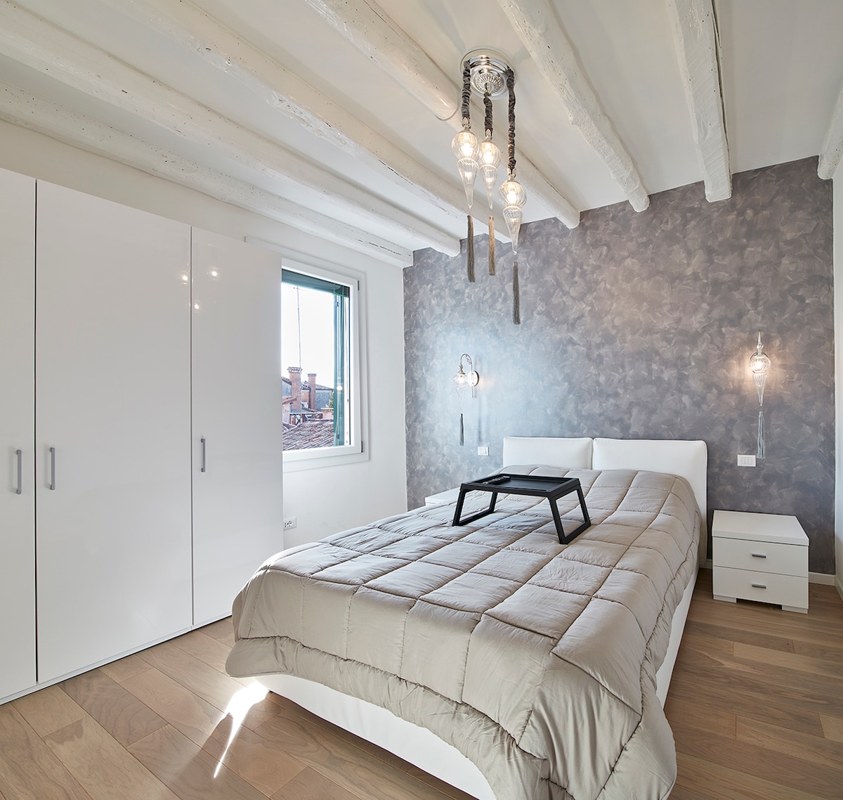 A bright and characteristic design-apartment on the top floor of a historic Venetian building. It is close to all the city attractions and it is equipped with lift and two terraces with splendid views of Venice city center. Its privileged position makes it very quiet and perfect for a holiday with every comfort. It is equipped with two double bedrooms and two bathrooms and it can easily accommodate up to 6 guests.
