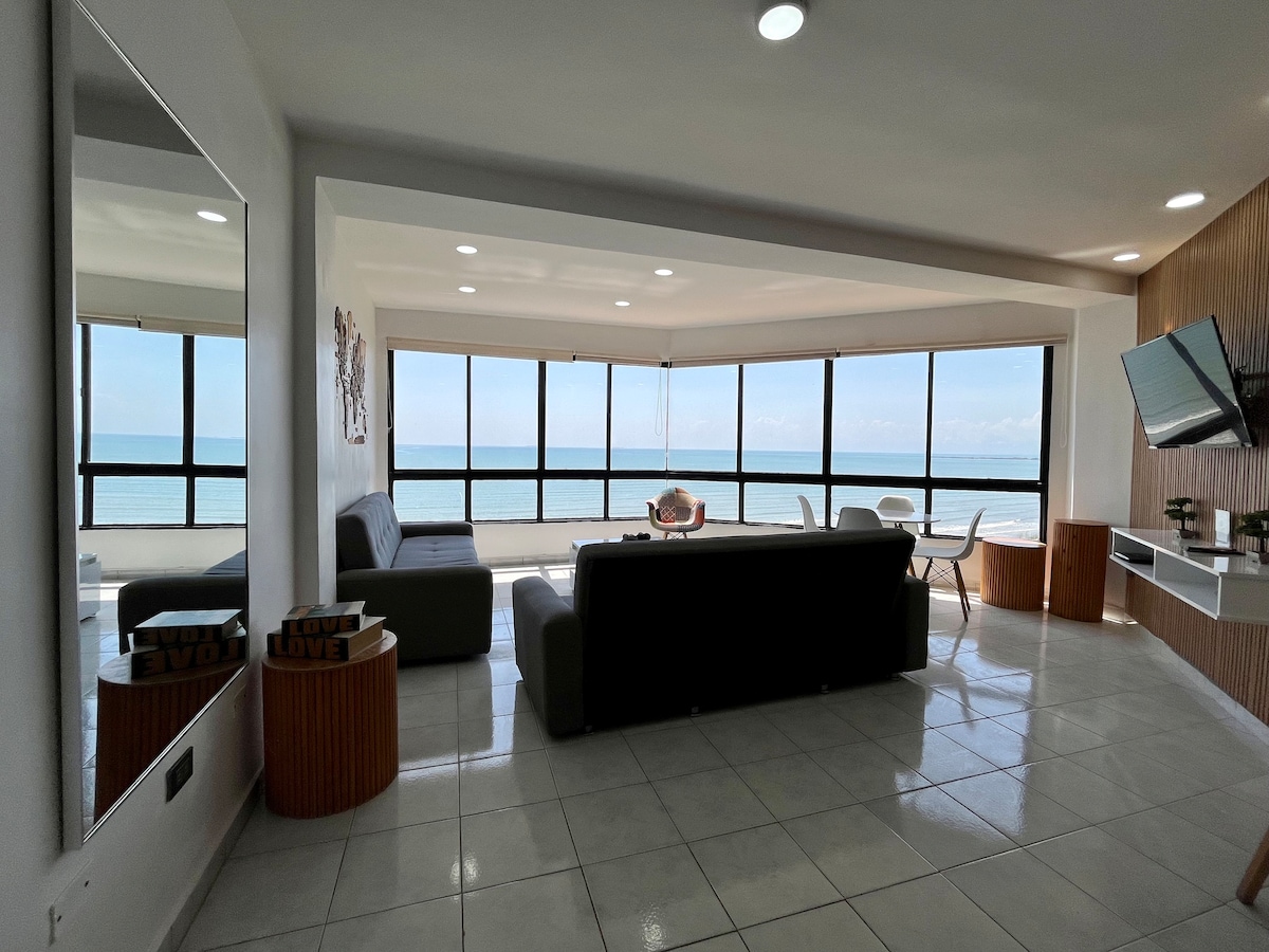 Un alojamiento GoUppers. ¡Sin comisiones de Airbnb: lo que ves es lo que pagas! Tu rincón costero en Tucacas! Este luminoso apartamento para 6 personas te brinda una ubicación inmejorable con impresionantes vistas al mar. Con 2 habitaciones y 2 baños dentro de un edificio renovado; terraza y piscina frente al mar, es el balance perfecto entre comodidad, diversión y proximidad a los cayos. Ideal para familias que buscan explorar el Parque Nacional Morrocoy. ¡Vive una experiencia única en Falcón!
