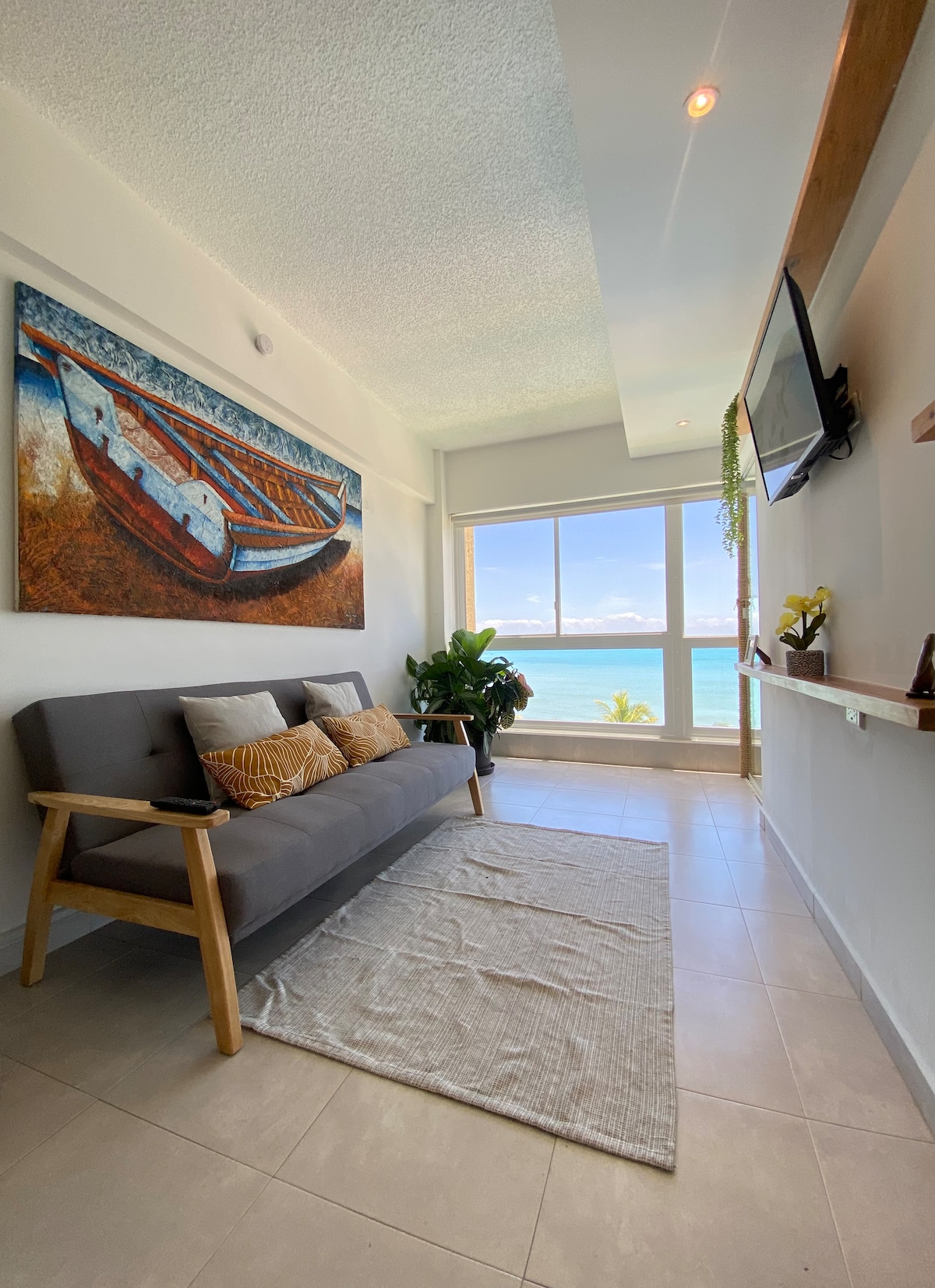 Este hermoso apartamento te ofrece comodidad y estilo después de un día de sol y mar: El edificio tiene acceso directo a la playa, así que puedes bajar y disfrutar del mar en segundos, luego refrescarte en la piscina. La sala tiene una cómoda cama y una hamaca de sentarse que a todos les encanta. Además, al lado encontrarás un restaurante francés y otro para desayunar. La seguridad del complejo es excelente. Vivirás una experiencia tranquila, segura y llena de confort. Como una burbuja en Cumaná