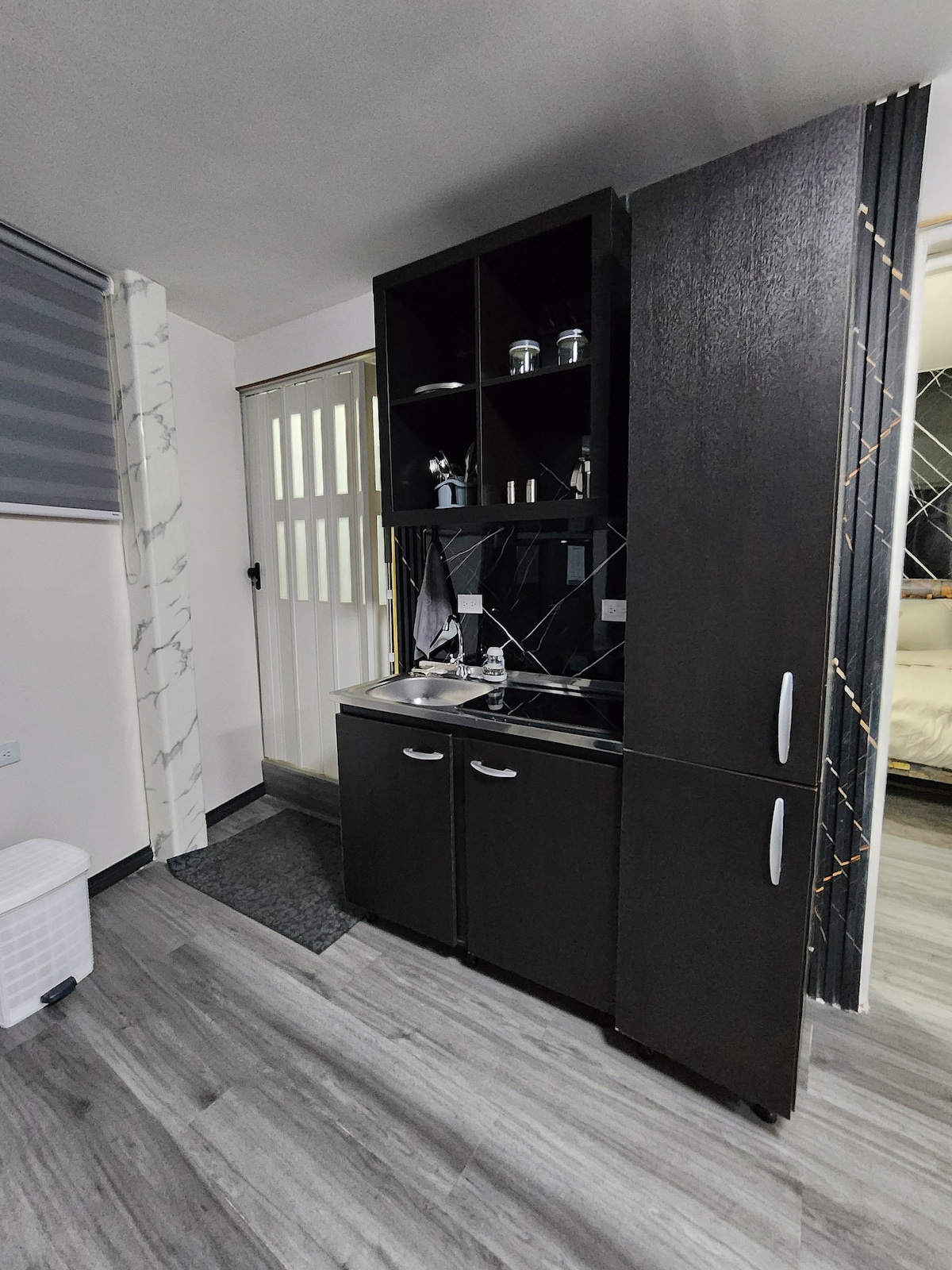 Este acogedor ANEXO tipo estudio ofrece todo lo necesario y es compacto y moderno. Ubicado en una zona céntrica, cuenta con una cama matrimonial, una cocina totalmente equipada con estufa, refrigerador y microondas. Este diseño claro crea un ambiente elegante y luminoso. Hay estanterías y espacio de almacenamiento, lo que permite mantener todo ordenado. Es perfecto para una o dos personas que busca comodidad, funcionalidad y cercanía a los principales puntos de interés de la ciudad.