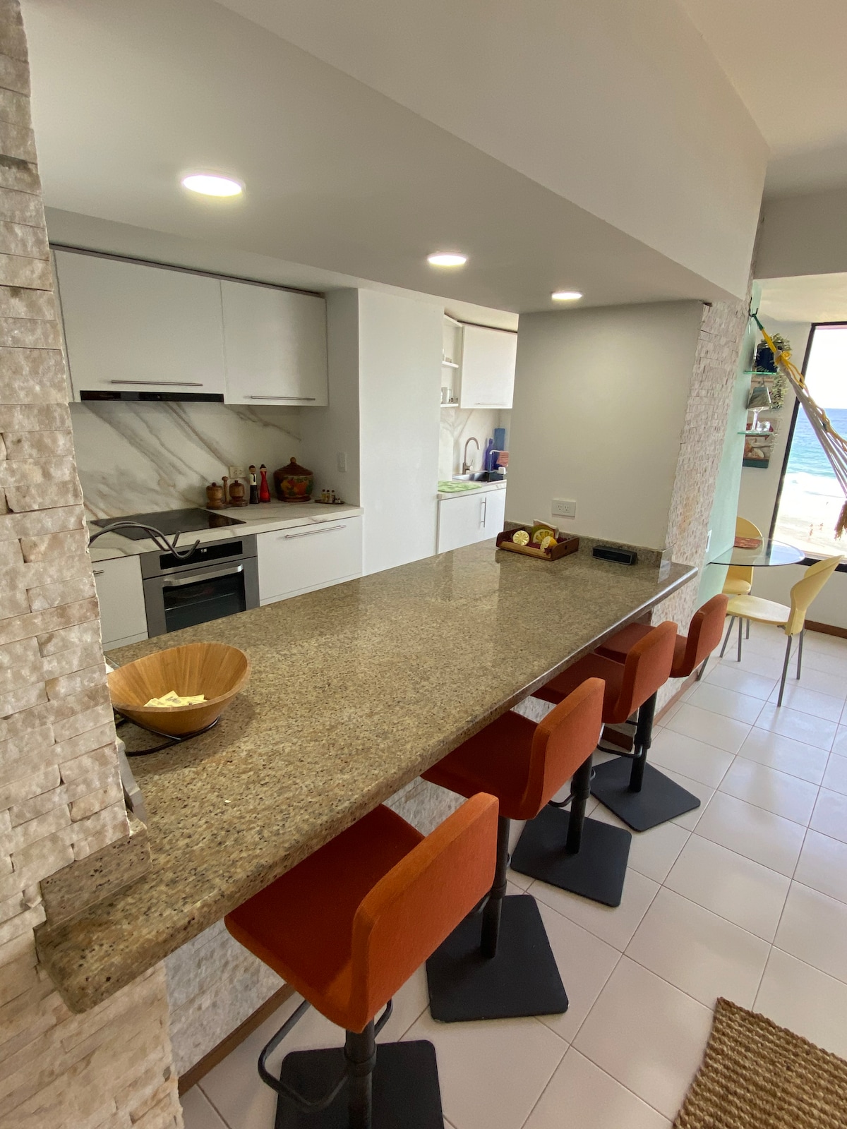 Apartamento recién remodelado y frente a la playa (¡primera línea!). Este apartamento es espacioso en todo sentido: cuartos y baños grandes, sala de estar y tres áreas para comer. Tanto las habitaciones como la sala tienen vista a través de ventanas grandes desde donde se observa una hermosa vista de la costa y se puede ver toda la playa. El apartamento tiene acceso a 3 playas. Bien equipado con todos los esenciales para tu estadía, incluyendo artículos de cocina, lencería y entretenimiento.