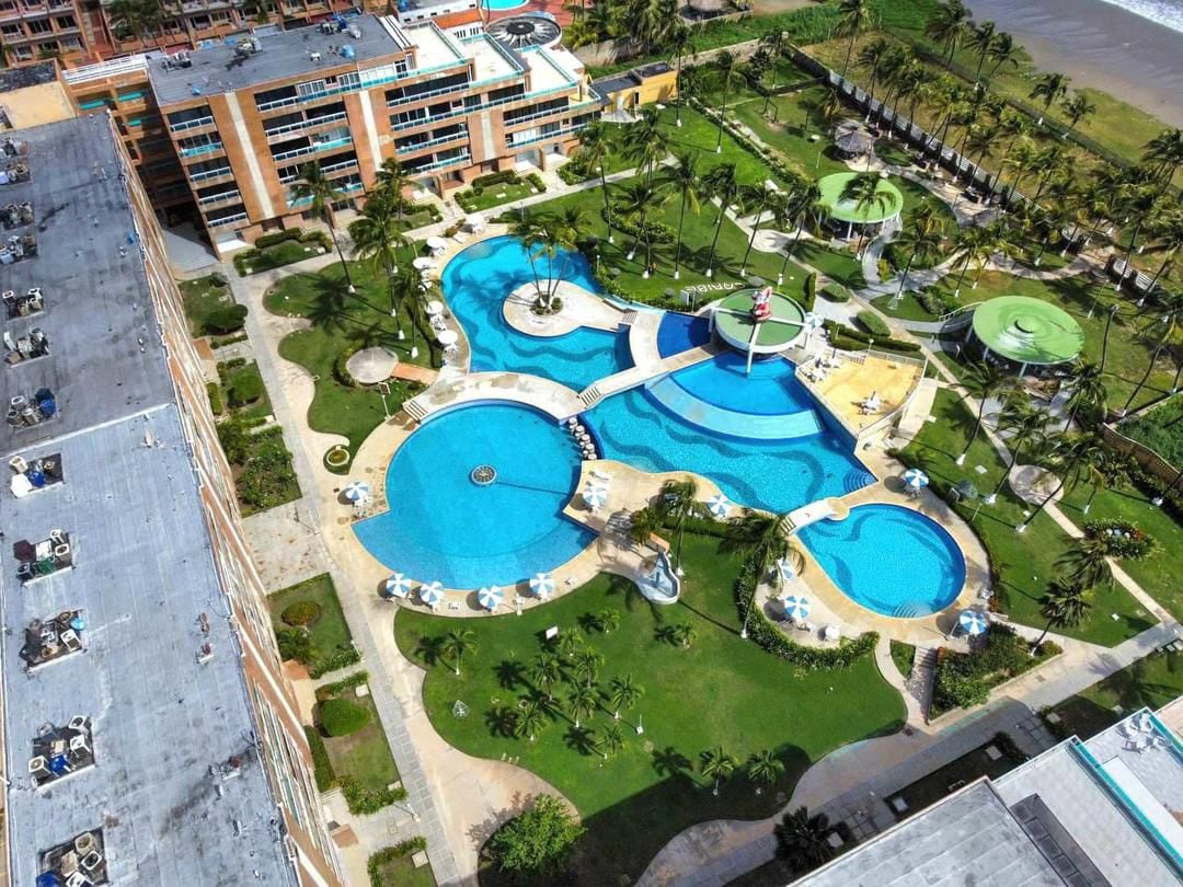 apartamento con vista frente al mar , acceso directo a la playa , chozas , parrilleras , piscina, , excelente clima , contamos con seguridad en las áreas del edif , apto con aire acondicionado centra 3 toneladas, tv en sala y cuarto principal, cocina eléctrica, nevera , microondas , deshumidificador , purificador de aire , cama Queen tv , camas Queen y litera individual , calentador, puesto estacionamiento. para el servicio de lancha tenemos Marina privada en parque Morrocoy.