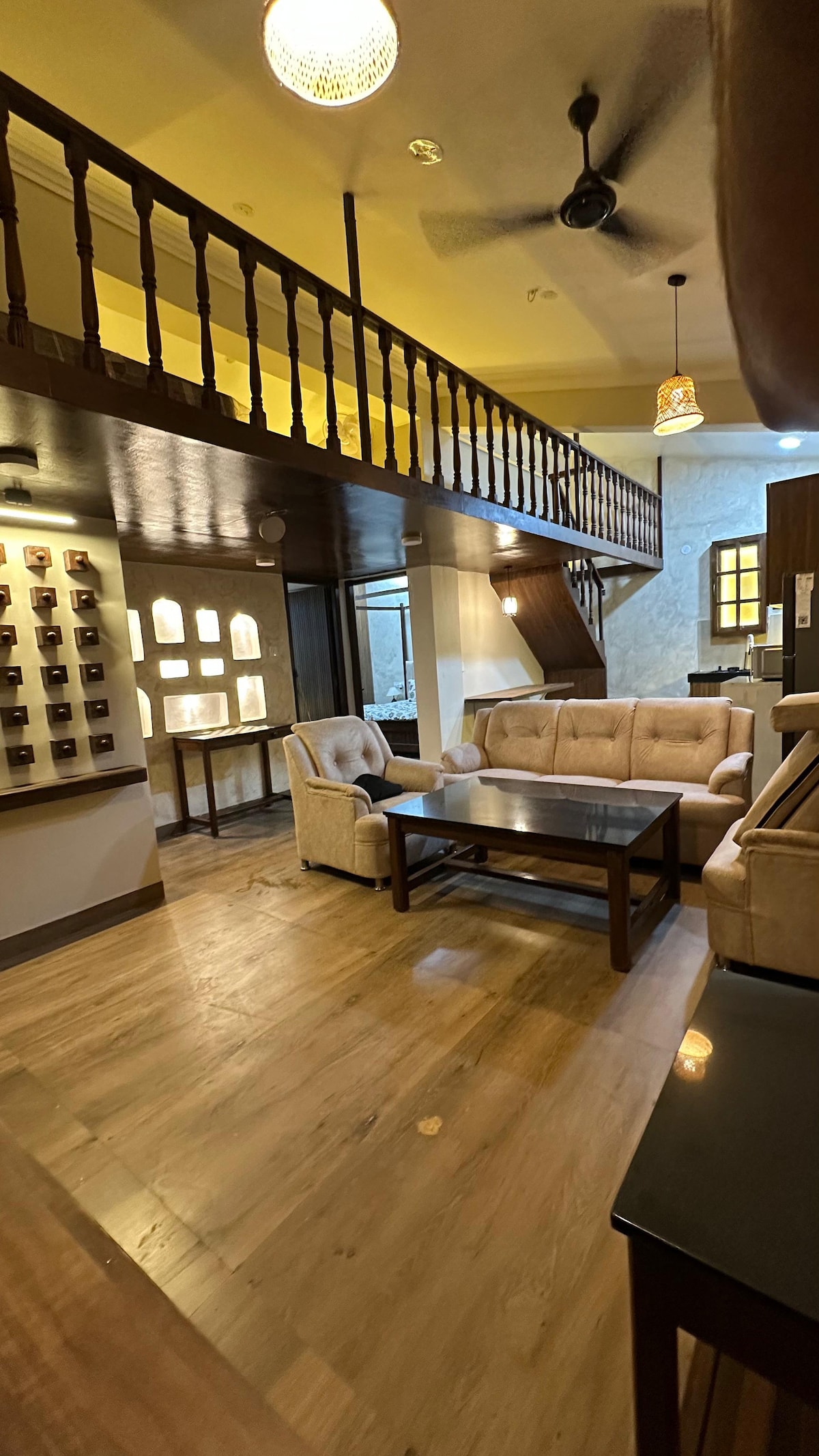 Moroccan Suite Calangute Beach Vibe is a 650 Sq ft (61 Sqmtrs) 1BHK King Bed with private balcony, Moroccan Lighting, Artifacts in the room (Handle with Care) fully equipped kitchen, 5 minutes (walk) from the beach opp apt, 10 mins away to the main Calangute beach (Car), 12 mins to Baga Beach (Car), 7 Mins Fort Aguada, Candolim Sinq Beach, Nightlife, Shopping stone throw away, Care Taker On Call till 10pm, Pro Active Host just. Families and Couples seeking privacy only, strictly no bachelors.
