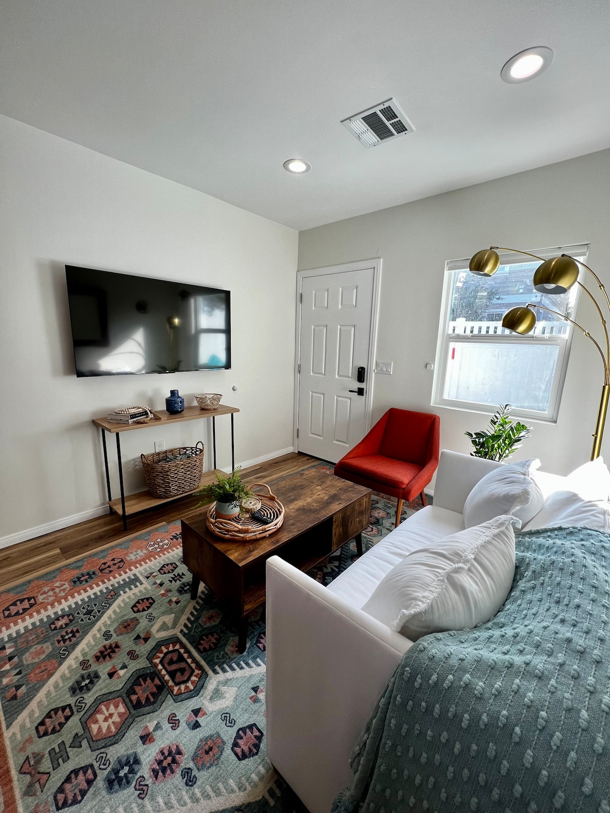 A gem in the area of boulders, trails and nature preserve on a private street with plenty of parking! The guesthouse offers a cozy setup with spacious living area; high-vaulted ceilings in all rooms; a 65 inch Smart 4K TV with FREE streaming apps (Netflix in 4K and more) plus local news. Located in a rural neighborhood, yet 5-10 minutes to the nearest dining, groceries, theaters, shopping and a 30-minute scenic drive away to the beach and major Los Angeles & Simi-Valley tourist attractions.
