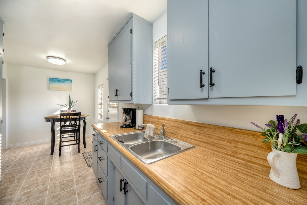 Enjoy your LA escape in our cozy, secluded, sunny casita that fits 1-3. Full Kitchen, bathroom with shower, washer/dryer, skylights + Private patio and small yard. 5 mins from the beach & LAX. Walk to 15+ restaurants & bars. Parking spot included.