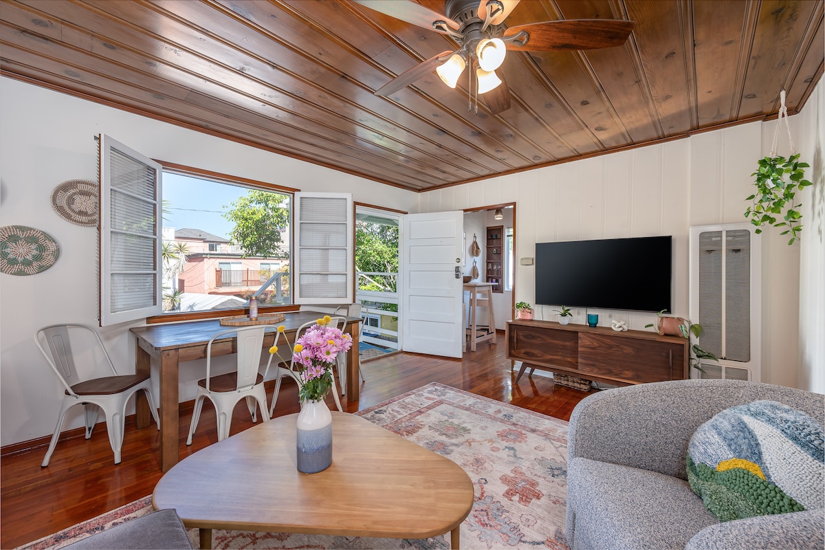 Soak up the Venice sunshine just two blocks from the sand! This charming two-story beach cottage offers a private backyard—a rare find near the ocean—perfect for BBQs and evenings by the fire pit. Beach-chic decor and local art create a relaxed, inspiring vibe. The downstairs suite has its own entrance, ideal for families, friends, or work trips. Fast Wi-Fi, quiet workspace, and free parking for two cars make this your perfect Venice getaway. Just 2 blocks to the beach & near lots of local food!