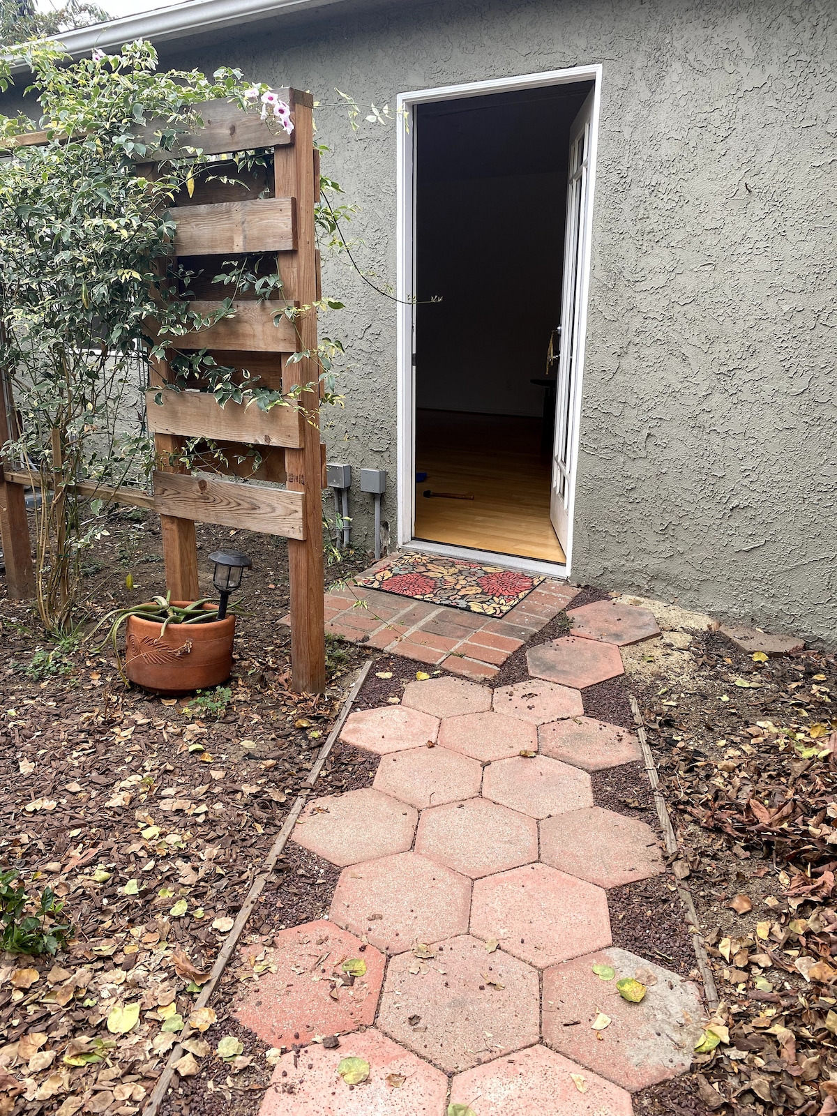 Modern/high end finishes, lush landscaping/quiet/walk to market, restaurants, coffee, boutiques. Close to beaches/Venice/museums. No shared walls, private patios. Studio on 2nd floor 2 blks public trans, trendy & foodie cafes/restaurants (Layla Bagels, Ghisallo, Local, Thyme, Love Coffee), laundry, grocer. WiFi, smart TV, micro, fridge & coffee/tea included, no kitchen sink, A/C SM bus license 235322. We live in front house. Max 2 guests. 3 night min for major holidays. Copy of gov’t ID req’d