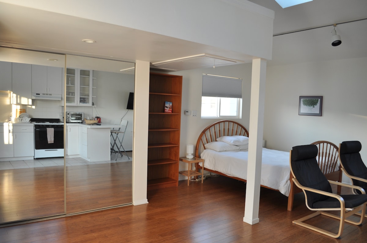 A unique and modern studio located in the heart of Santa Monica, California! We are locator 1.5 miles from Santa Monica and Venice beaches with trendy shopping and restaurant destinations nearby! The studio is newly renovated with its own separate/private entrance, an updated kitchen, mini refrigerator, TV, WIFI, a Queen size bed, an extra fold-out/futon bed, shower, closet, luggage storing space, and more. The Studio is situated in a quiet and safe neighborhood with lots of street parking.