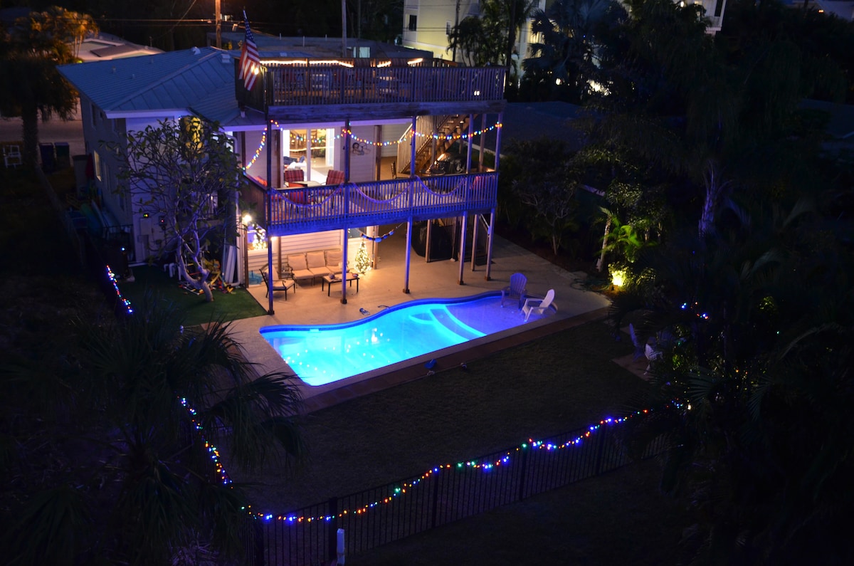 Relax & un wind in this stylish 1BR, beachfront Siesta Key duplex. Just steps from the sparkling Gulf Coast beaches, this private getaway features colorful interiors, a cozy bedroom, open-plan living & a backyard oasis with a private pool, hot tub & BBQ. Perfect for families, couples, or small groups seeking sun, fun & unforgettable memories. Book now for your dream beach escape! ☀ private pool ☀ Steps To Beach ☀ Life-Size Connect 4 ☀ BBQ Gril ☀ Hot Tub