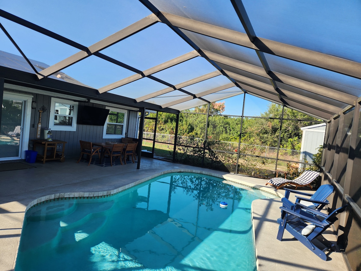 Relax with the whole family at this peaceful place to stay. Enjoy 2 master suites with 3 bedrooms and 3 bathrooms. A 5 min drive to Nokomis beach or downtown Venice, and walking distance to legacy trail, tennis courts, and playground in Nokomis park. Fast 500GB up/down internet speed around the property, Tiki bar nestled next to a heated pool and spa ( adtnl charge for spa). Fully stocked kitchen, beach-ready with cooler chairs umbrella wagon, and toys. 4 smart tvs