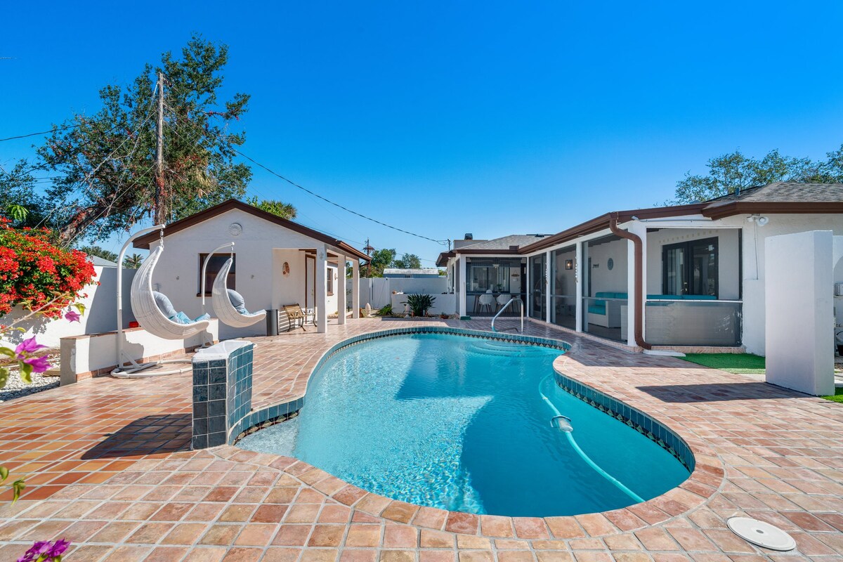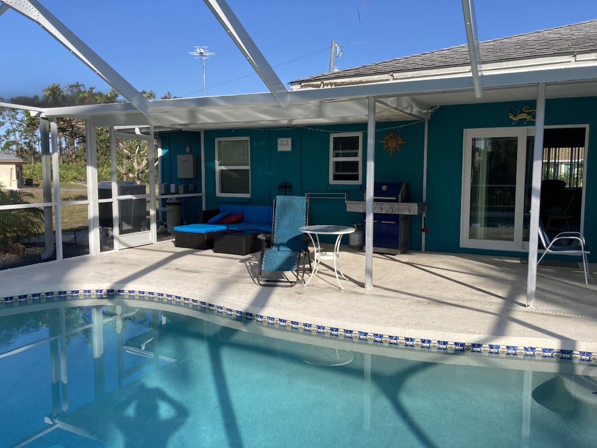 Your next retreat to Florida paradise should be Casa Blu with it's private pool and serene backyard. It's just minutes to area beaches, restaurants and parks. Let the stresses of daily life melt away as you float in the salt water pool, sipping margaritas, listening to Jimmy Buffett singing "It's Five O' Clock Somewhere" The single-floor layout, comfy bedrooms with private baths await. Fast WiFi, Smart TVs, and fully equipped kitchen. Everything's covered, from beach gear to a pack 'n play.