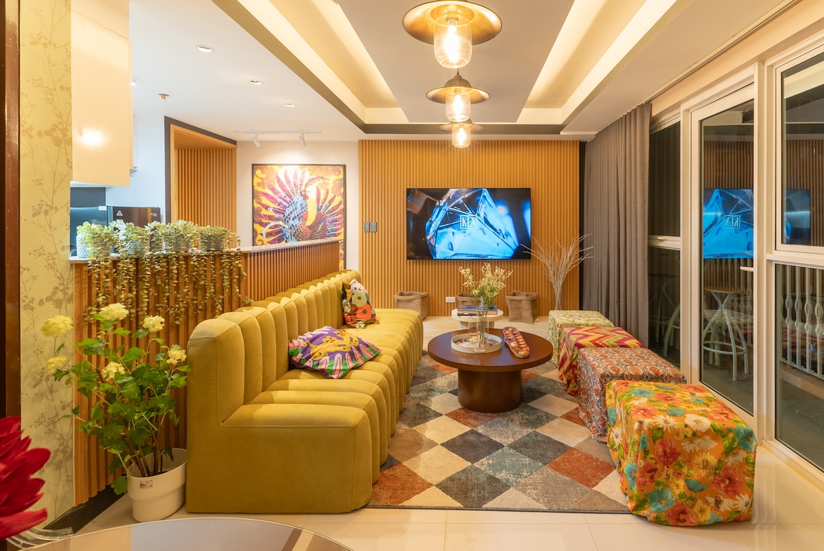 Stay in the heart of Venice McKinley Hill, just a short walk to Venice Grand Canal Mall, restaurants, and cafés.Enjoy a queen-size bed, 3-seater sofa, and 55-inch Smart TV. The kitchen is fully equipped with a stove, microwave, refrigerator, and kitchenware and with washing machine. High-speed WiFi keeps you connected for work or streaming. Relax on the balcony or explore the mall, just steps away. Experience comfort and convenience in a prime location.