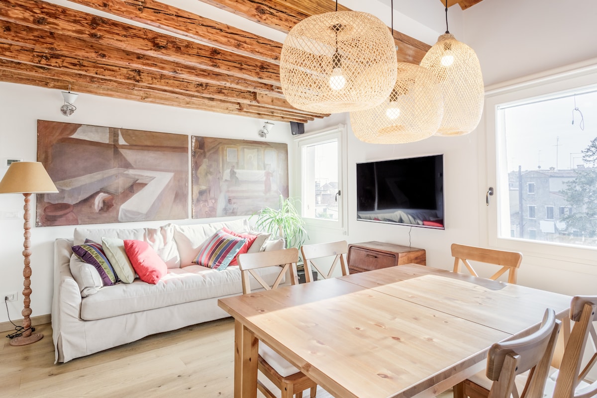 Affacciati dalle finestre e non ti sembrerà vero di vivere in una posizione tanto privilegiata tra i canali e le gondole. L'appartamento poi, con le sue linee pulite e le magnifiche travi del soffitto, saprà conquistarti. L’appartamento gode di una posizione unica, centralissima, ma allo stesso tempo molto silenziosa e tranquilla. Nelle immediate vicinanze si trovano supermarket, bar, ristoranti e tutte le principali attrazioni turistiche, come Piazza San Marco e Palazzo ducale.