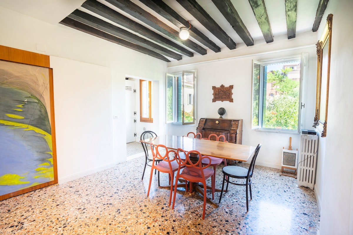 In the heart of Venice, in one of the most beautiful and evocative "camps" in the historical center, we will be happy to welcome you at Casa dell'Artista - wonderful and new apartment for 7 guests, just renovated with typical Venetian furniture and the owner's paintings. Overlooking the canal, where the typical Venetian gondolas pass, you can hear the romantic serenades of the gondoliers. Exclusive apartment for those who want to experience the city like a real Venetian!
