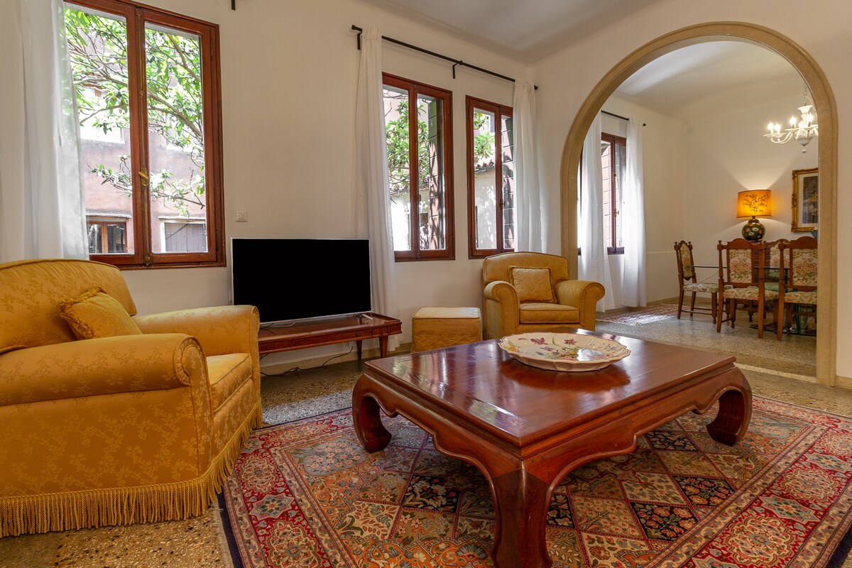 La Terrazza di Vivaldi- A whole house, extending over two floors and with an internal net area of 140 sq. m., four separate airconditioned bedrooms. Very centrally located (5 min. to st mark's sq. , 10 min to rialto, 7 min. to biennale)- and yet very quiet overlooking a typical Venetian Campo. The house, full of venetian character, has a balcony, a patio and a terrace all equipped with dining tables, just been refurbished, furnished with high quality modern italian pieces;IT027042c22ruucecg