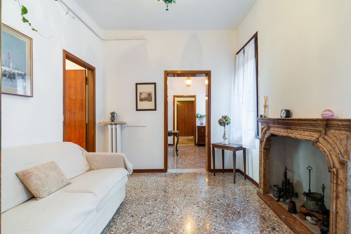 Charming family home exquisitely furnished and decorated, stunning dining room wooden ceiling and amazing views on Venice rooftops to Campanile di San Marco from the bedrooms windows, it can accommodate 6 people in full comfort in two large and luminous double bedrooms with king beds and a bright double bedroom with twin beds. The apartment location is 50 meters far from Fenice theater and 200 meters from San Marco square.