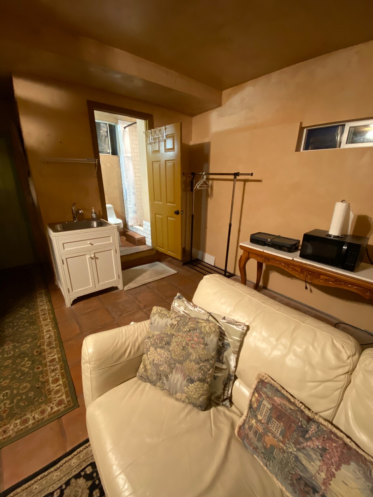 You will stay in a tranquil suite with a private entrance at the rear of our home. There is a shared wall with a secure door with locks on both sides for complete privacy. The 1-bedroom 1-bath suite features a kitchen with air fryer/toaster oven, electric skillet, 2 hot plates, microwave, refrigerator, and dishwasher. Sofa full size converts to sleep two. This sofa bed in the living room provides additional sleeping. We can provide a twin size aero bed as well.