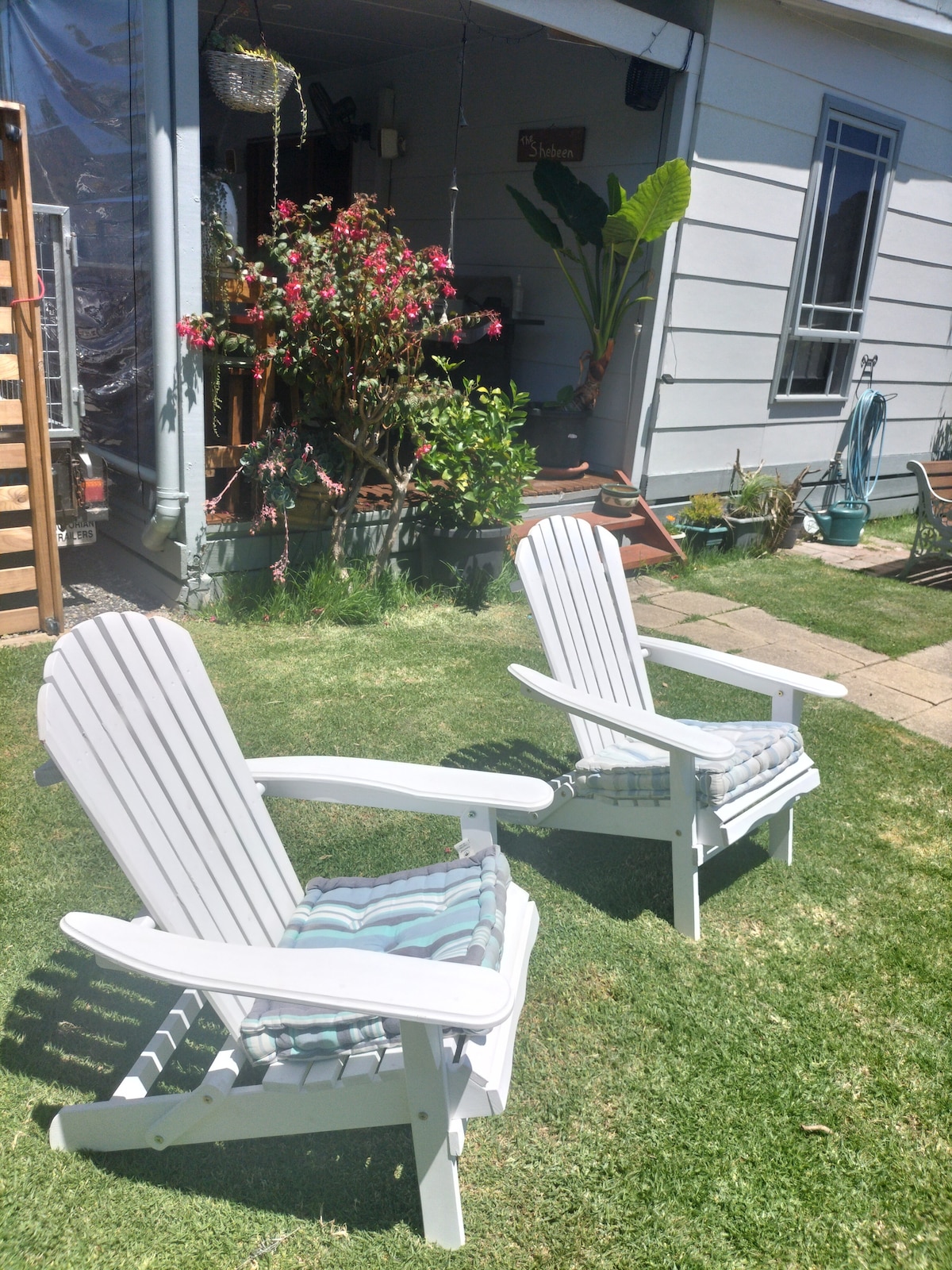 $1 cleaning fee for short stays! King and Queen beds with Egyptian Cotton Linen. This colourful cool Cape Woolamai beach house set in a very private large luscious garden is between a surf beach 2 min drive to the left and a safe swimming beach 2 mins walking to the right. Retro 60's feel, original artwork and furniture. Ideal for couples or small families. All linen provided. Dog beach meters away. Monitored for CO2, smoke, temp and decibels. Security Cam in driveway.