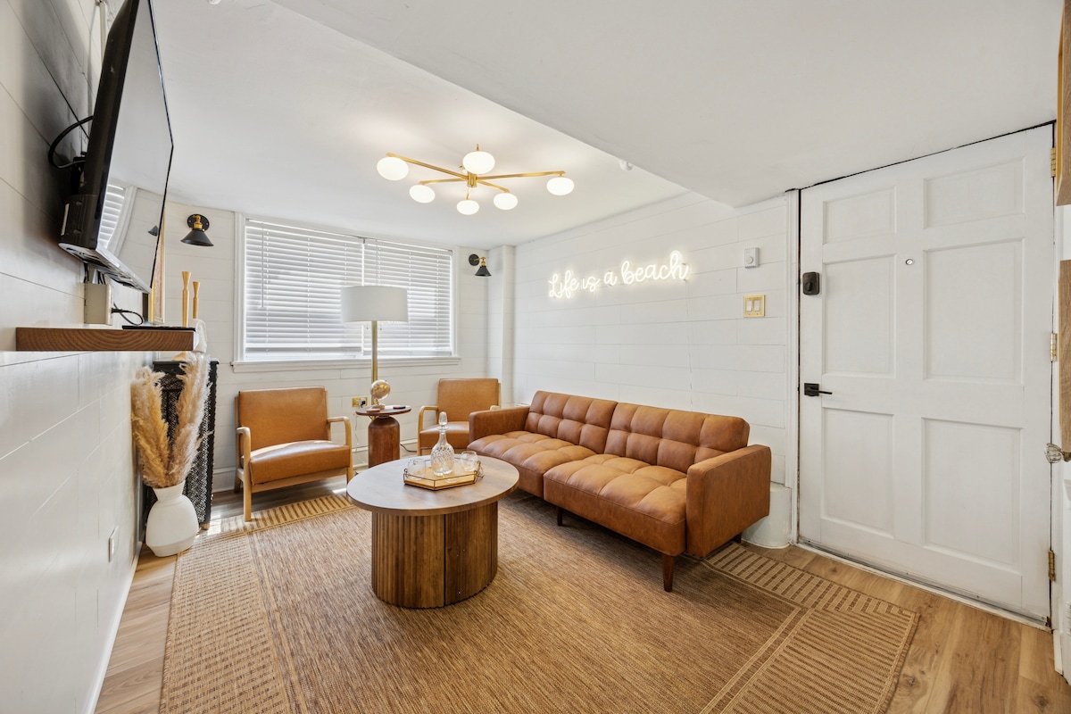 Welcome to The Saltwater House! Part of Ocean City’s historic district, built in 1920 and restored in 2020, this home is filled with old charm, with new modern coastal finishes. The Low Tide Suite is located on the first floor of the home, which provides easy access for guests traveling with kids or older guests that prefer not to do many steps. With a short 10-minute walk to the beach and boardwalk, this modern minimalist space is a great place to call home for your beach vacation!